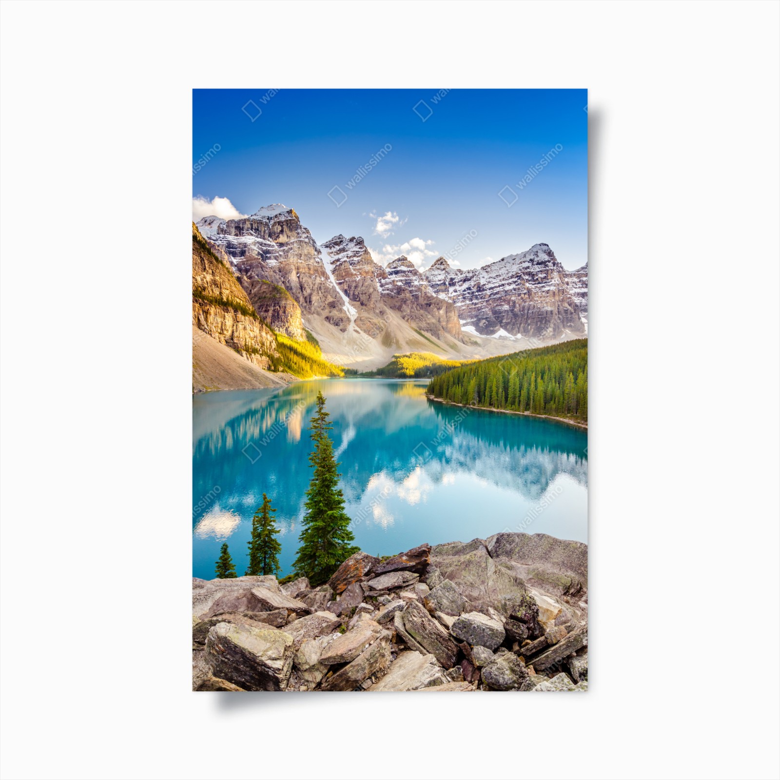 Poster sonnenbeschienenes Moraine Lake bergpanorama – Wallnifity®