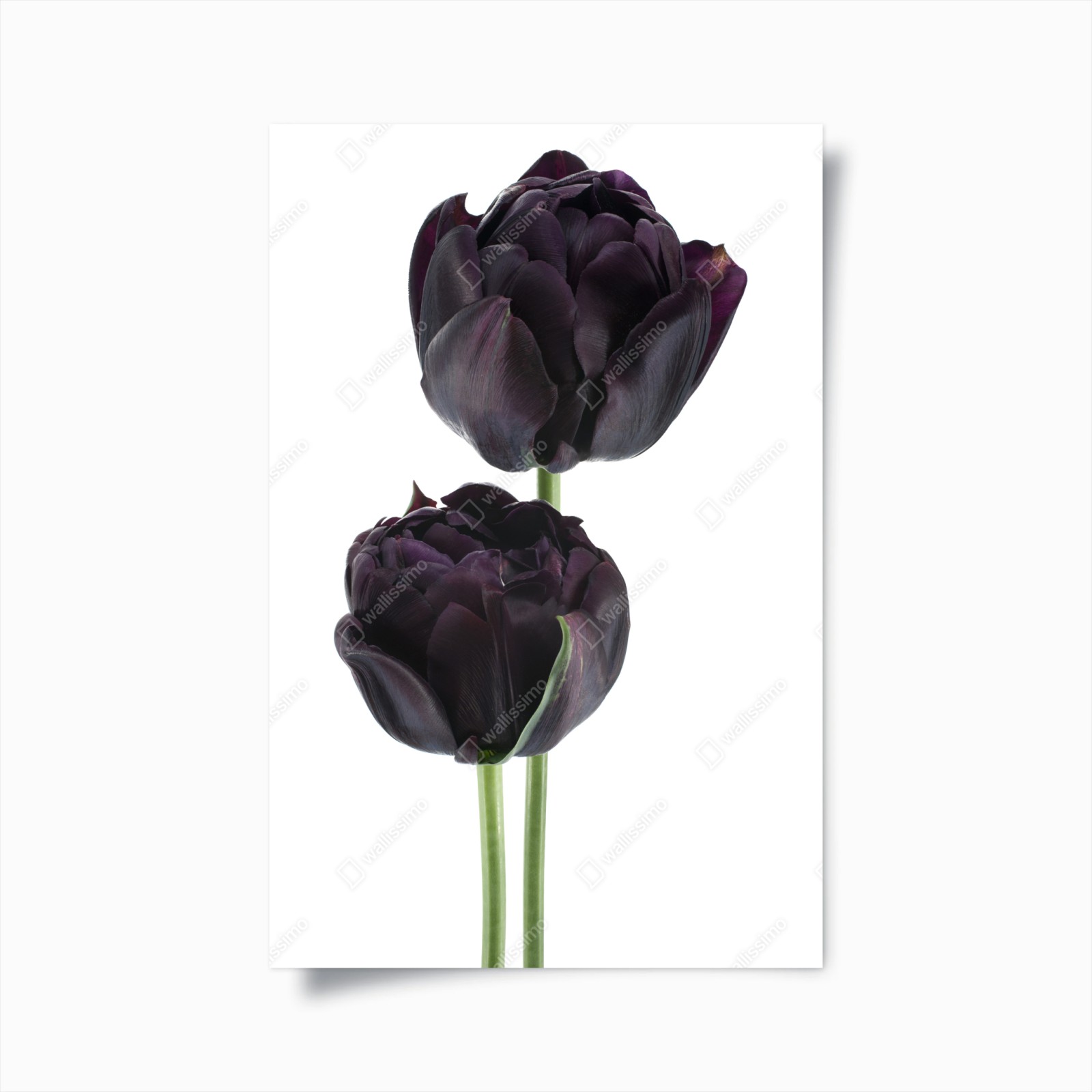 Poster Dunkle violette tulpen auf weißem hintergrund