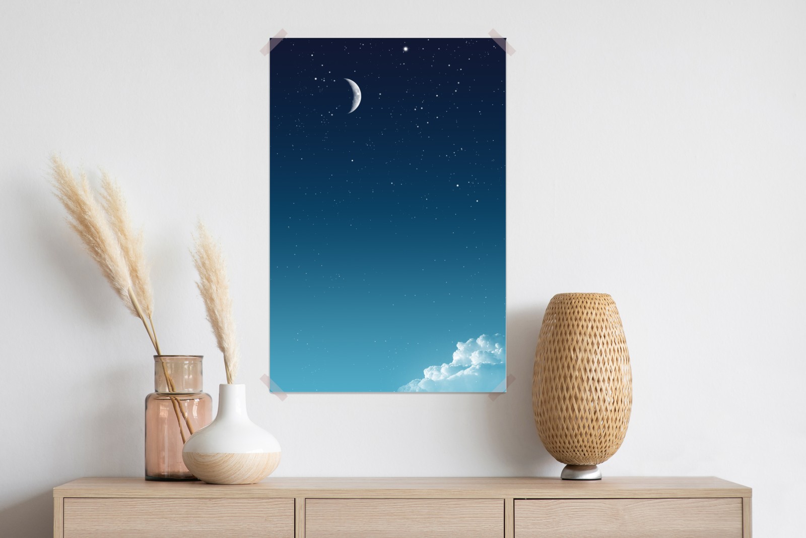 Poster ruhiger halbmond am sternenhimmel – Wallnifity®