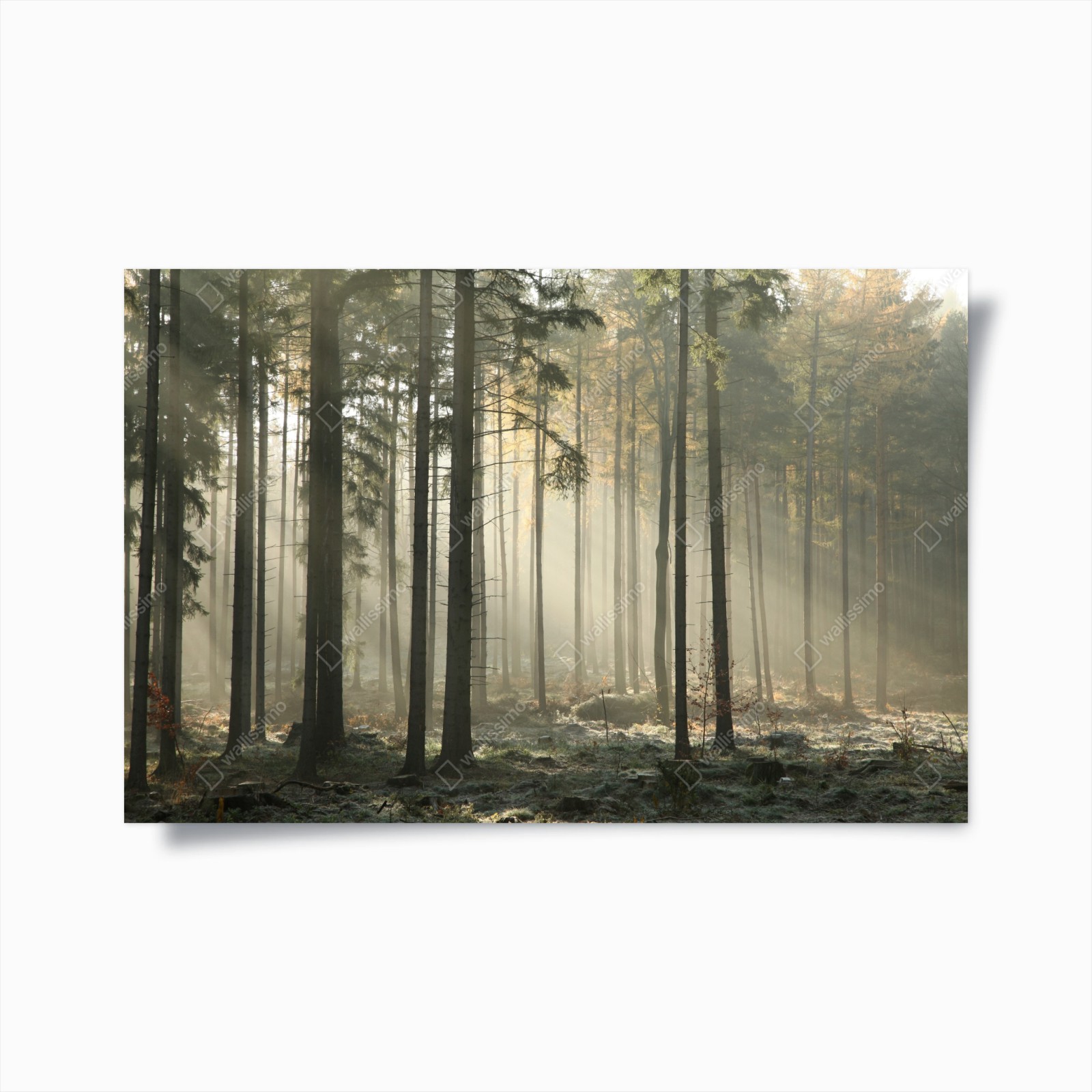 Poster Nebliger morgenwald mit sonnenstrahlen