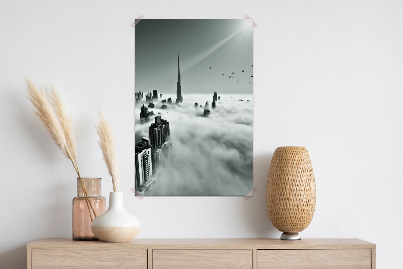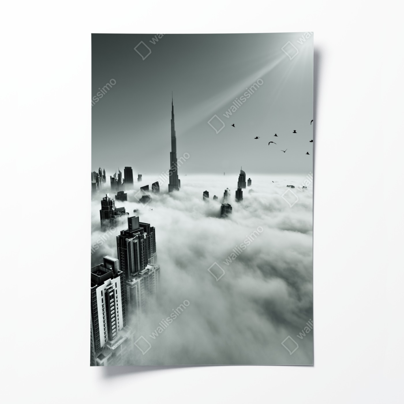 Poster Neblige skyline von Dubai über den wolken