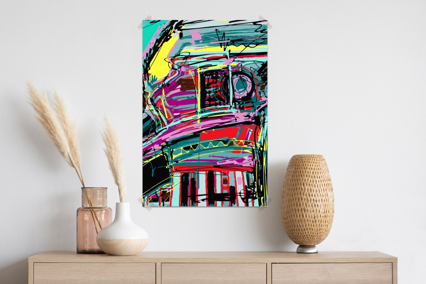 Poster lebhafte türkis abstrakte autokomposition – Wallnifity®