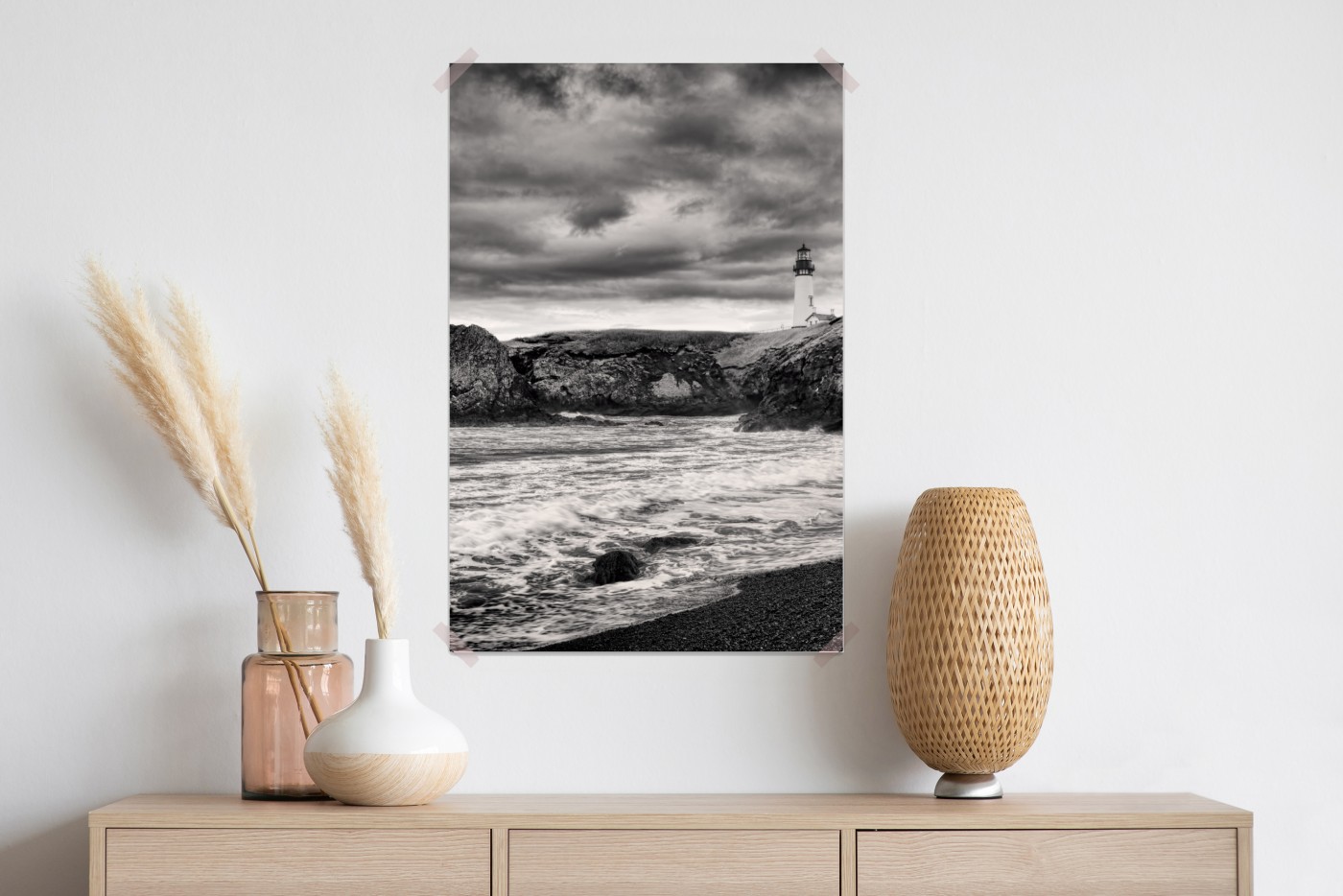 Poster Leuchtturm Yaquina Bay an stürmischer küste
