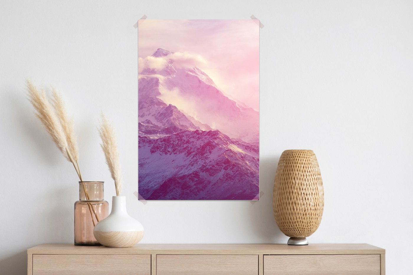 Poster Pastellfarbener sonnenaufgang über den bergen