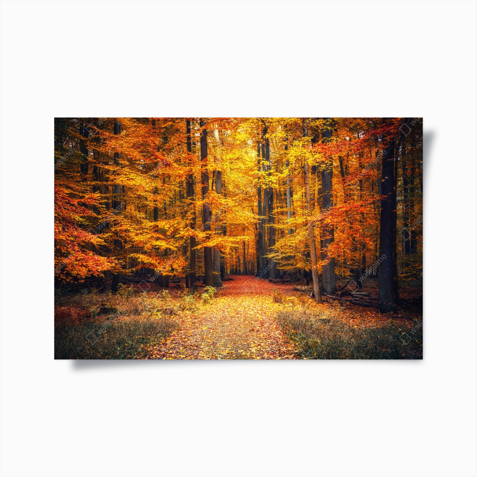 Poster Herbstlicher waldpfad mit goldenen blättern