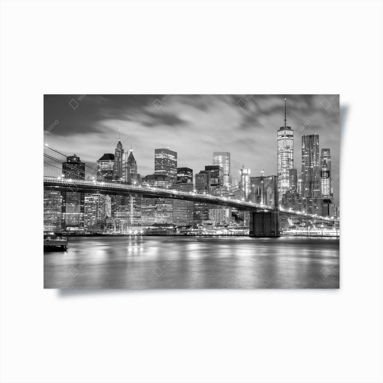 Poster Schwarzweiß skyline von New York mit Brooklyn Bridge