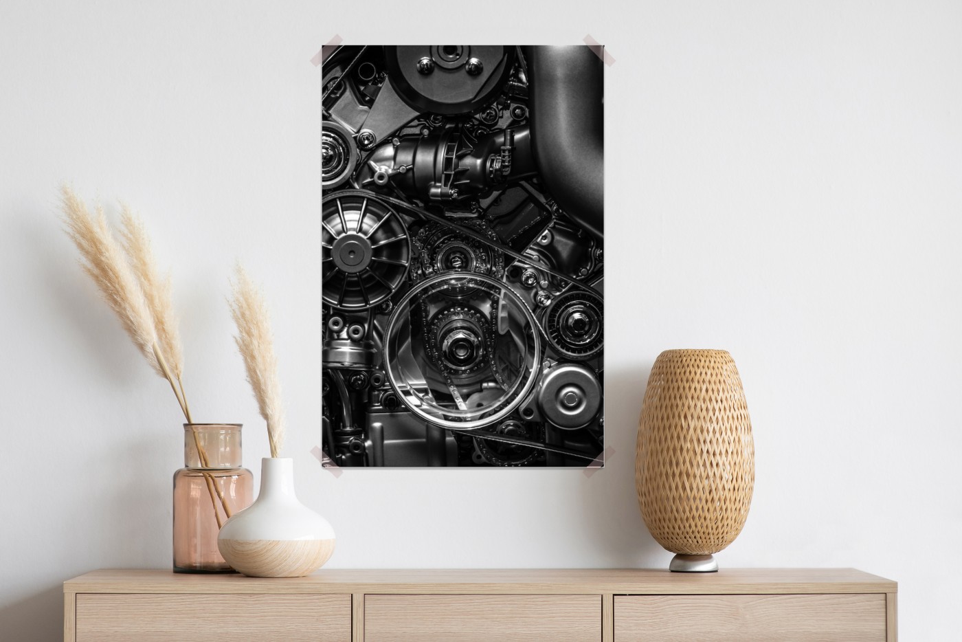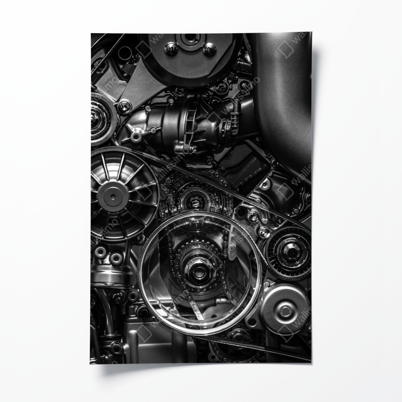 Poster Präzise motor-nahaufnahme im industrial-stil
