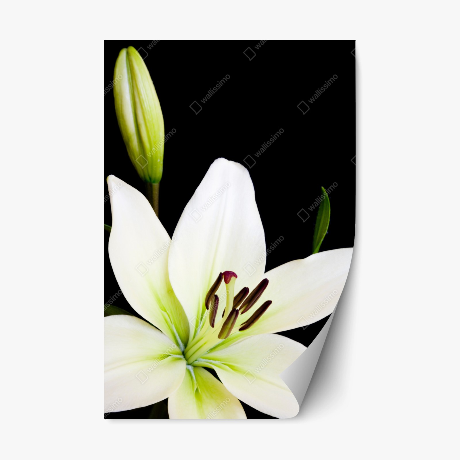 Repositionierbarer Aufkleber Weiße lilie vor schwarzem hintergrund
