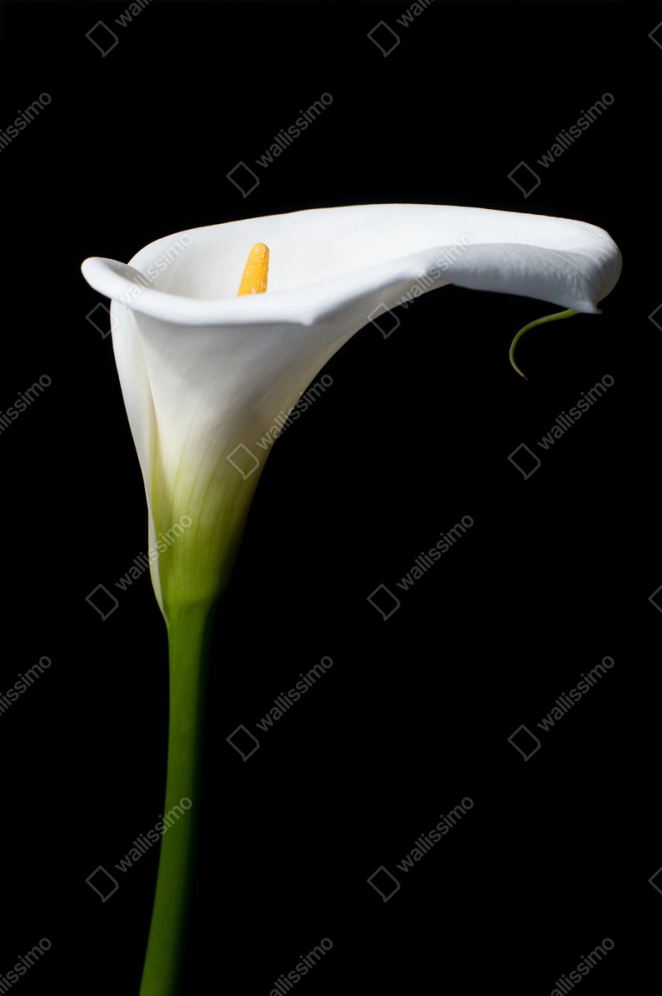 Repositionierbarer Aufkleber Elegante weiße calla auf schwarzem hintergrund