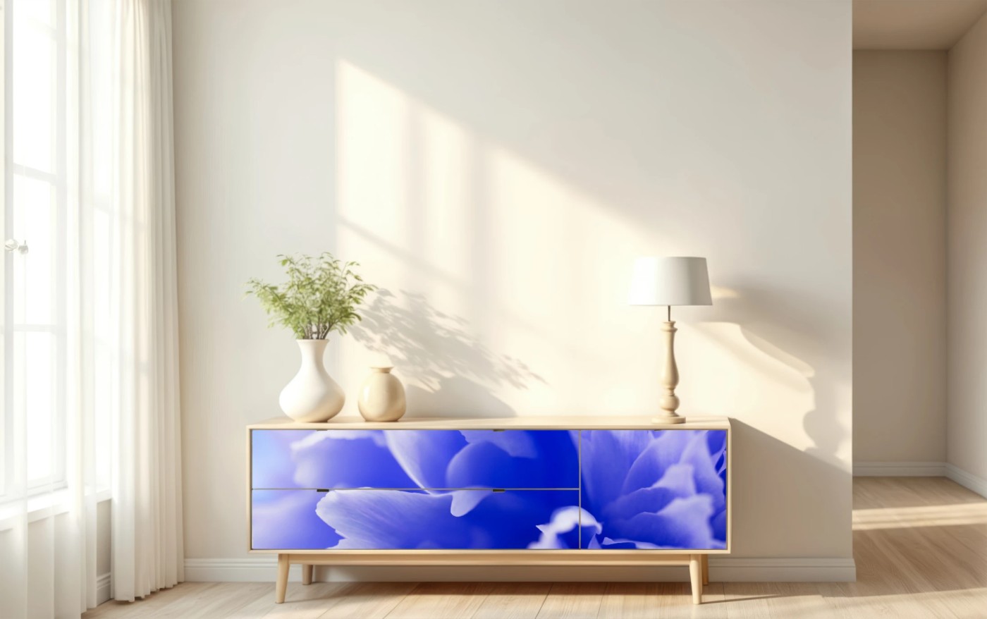 Repositionierbarer Aufkleber Sanfte blaue abstrakte blume nahaufnahme