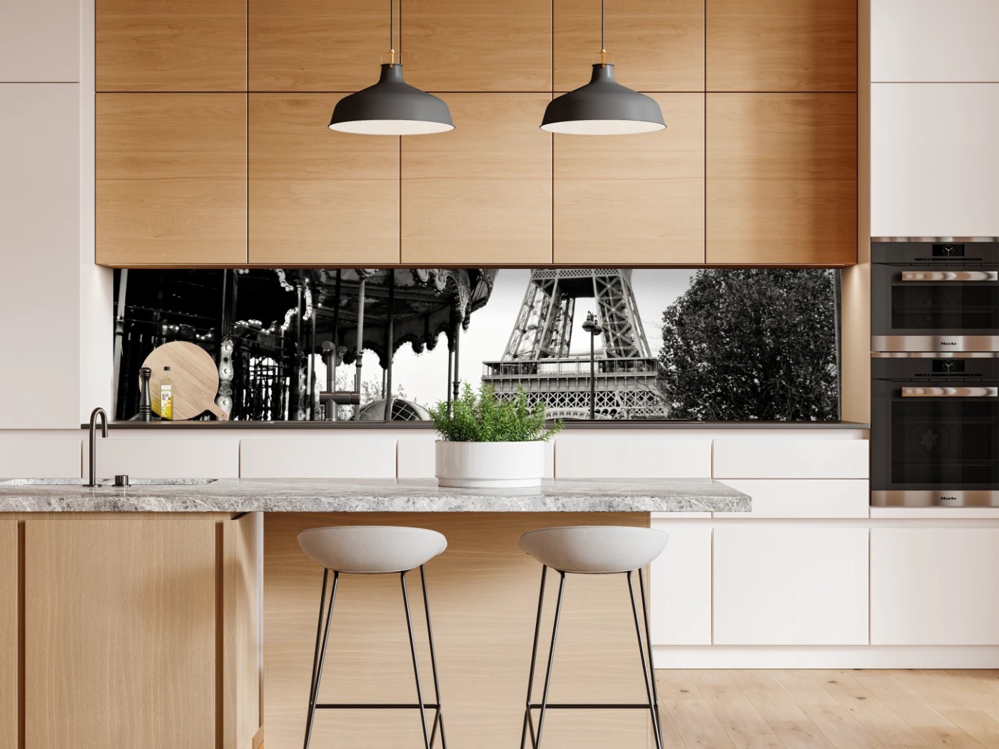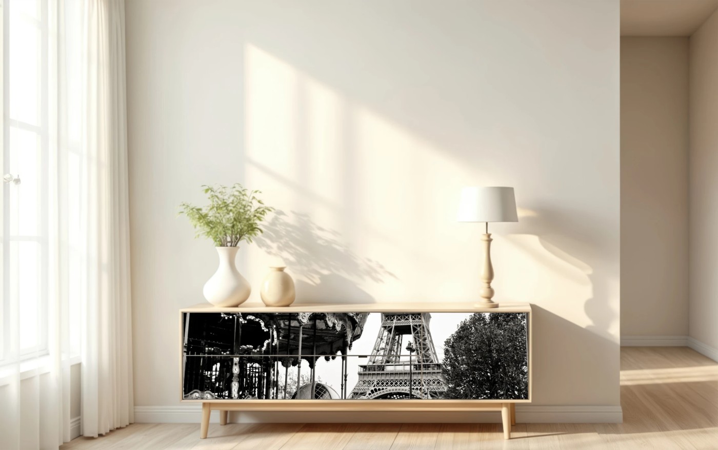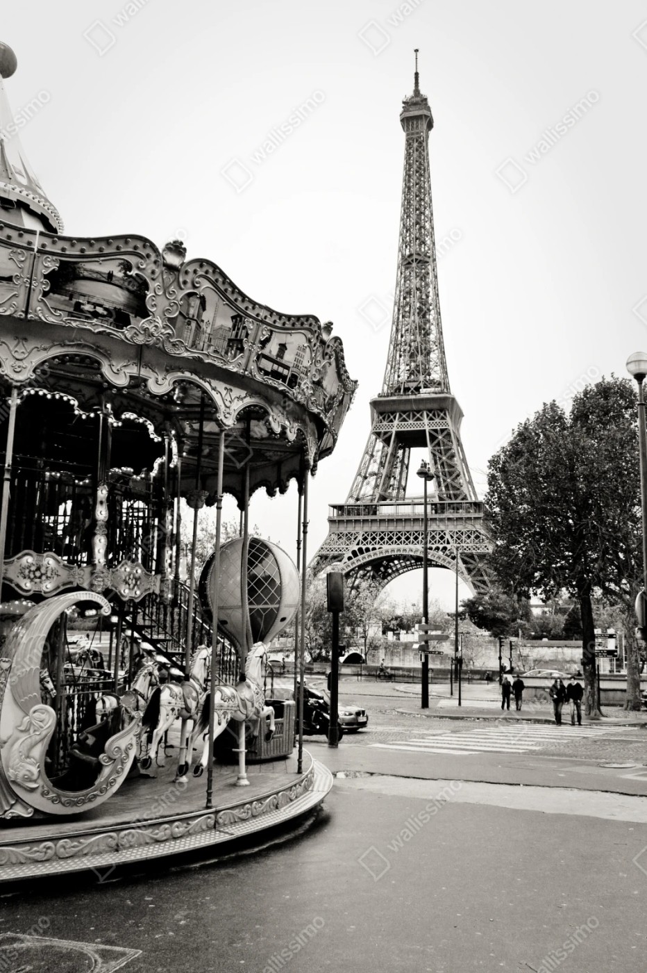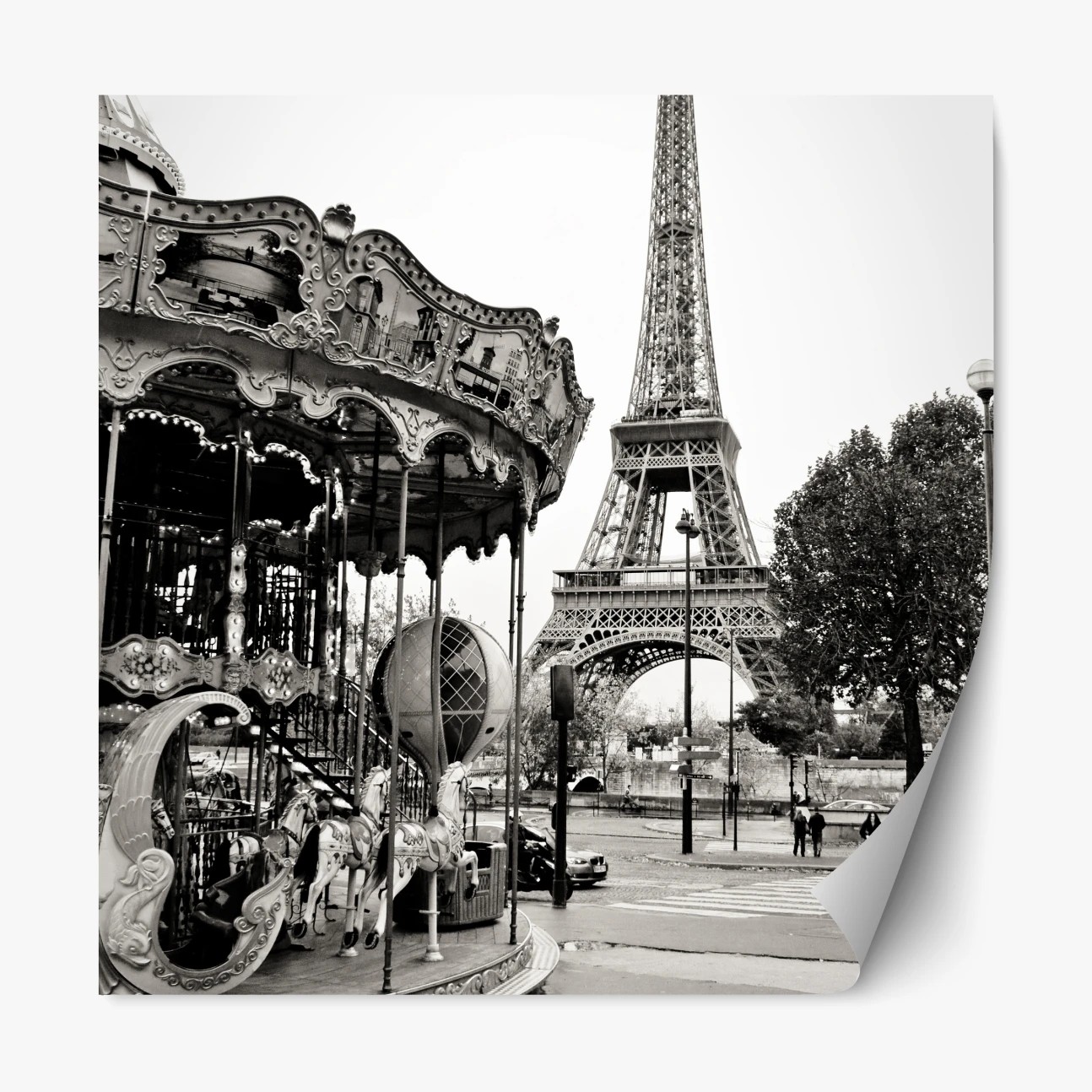 Repositionierbarer Aufkleber Eiffelturm und karussell in Paris