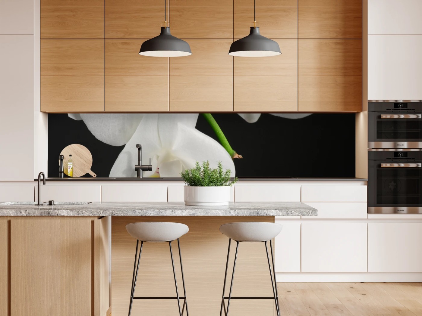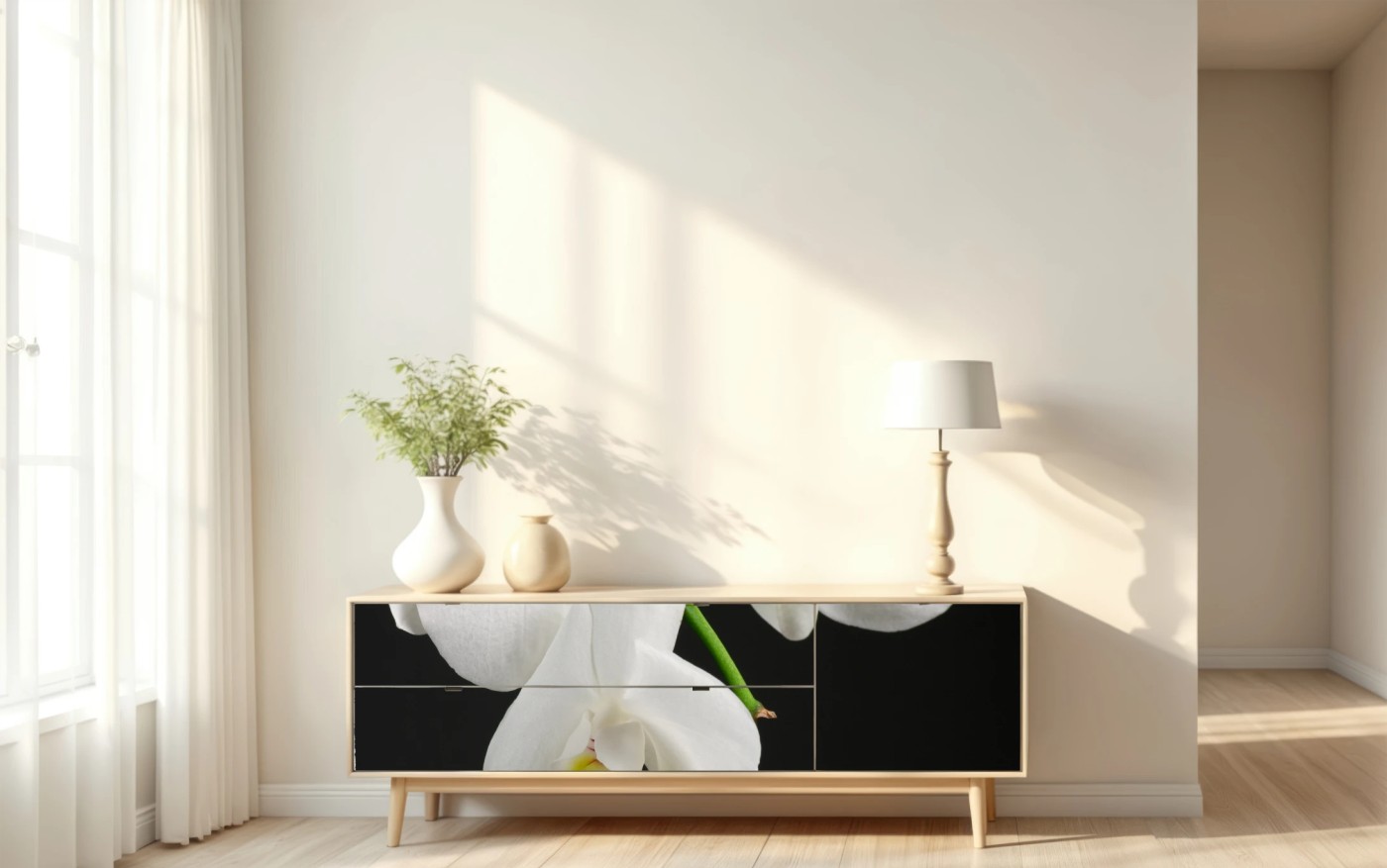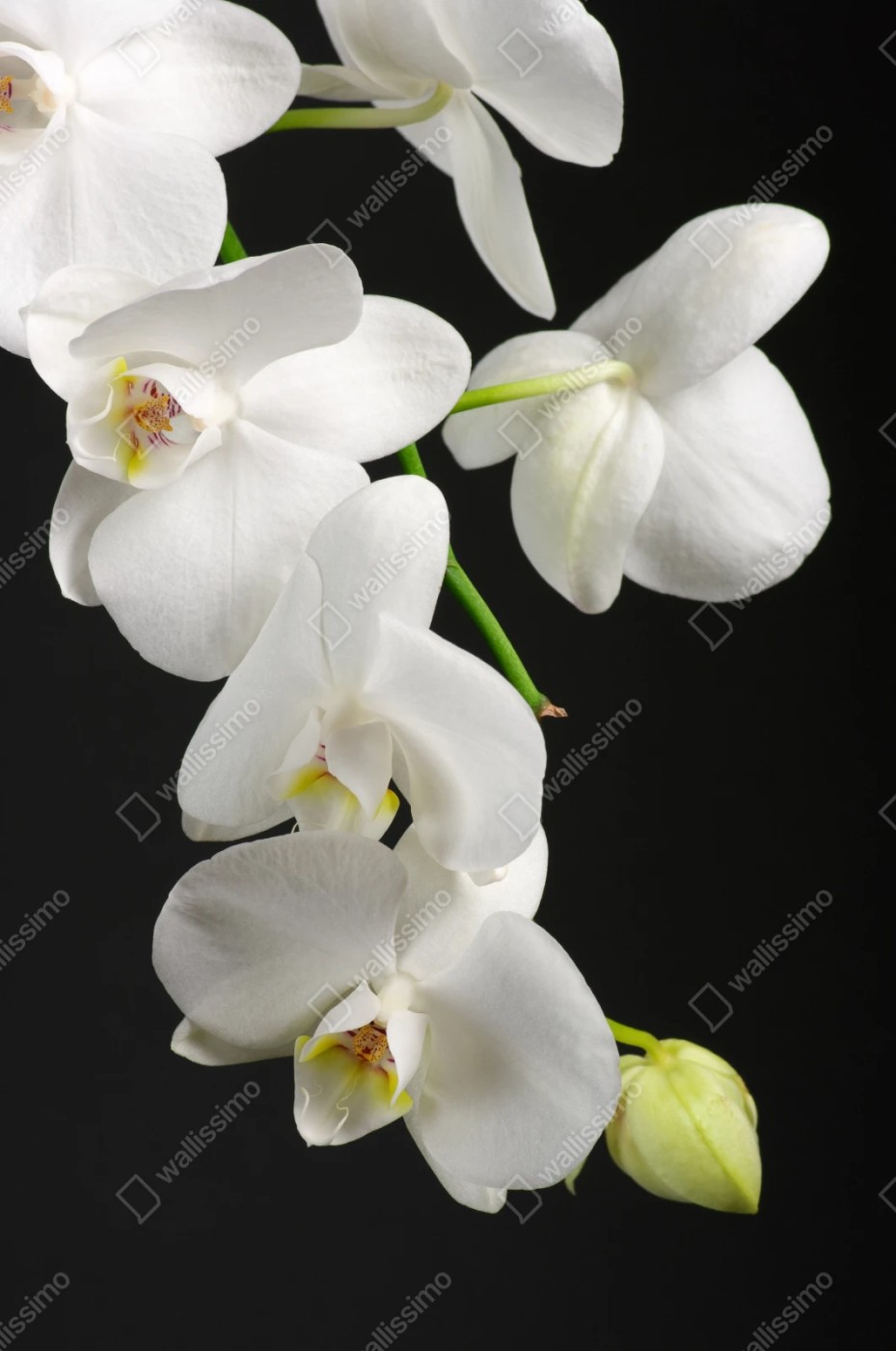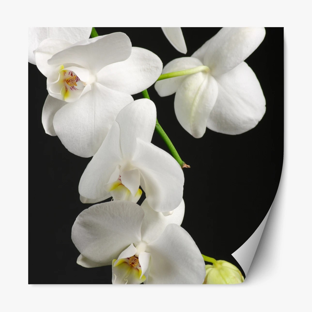 Repositionierbarer Aufkleber Weißer orchideenzweig vor schwarzem hintergrund