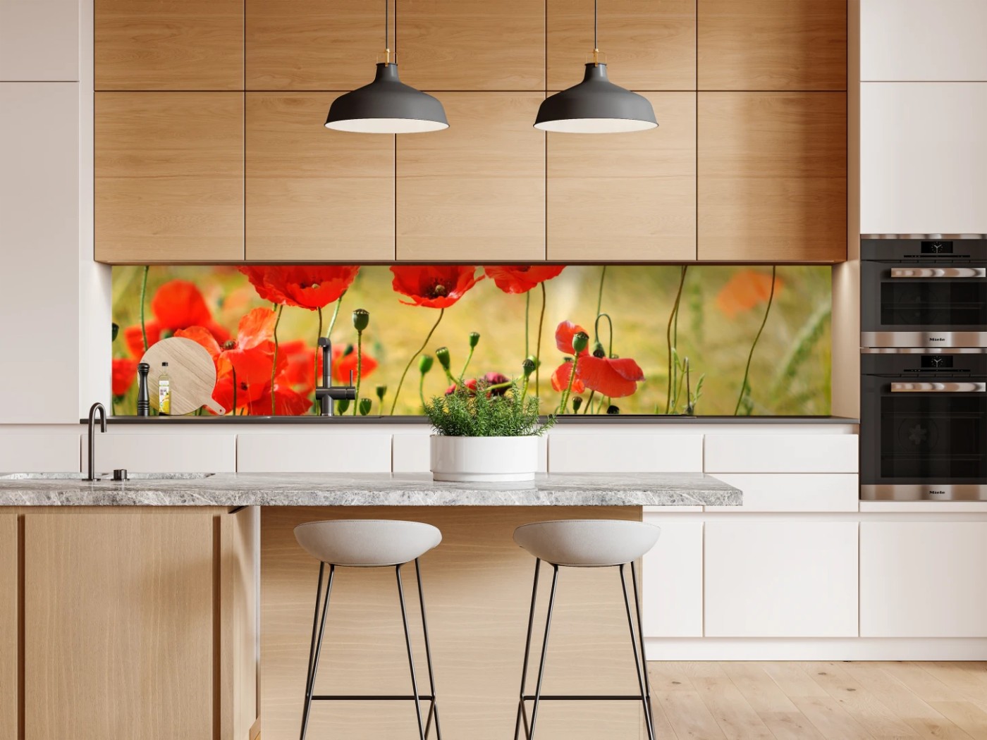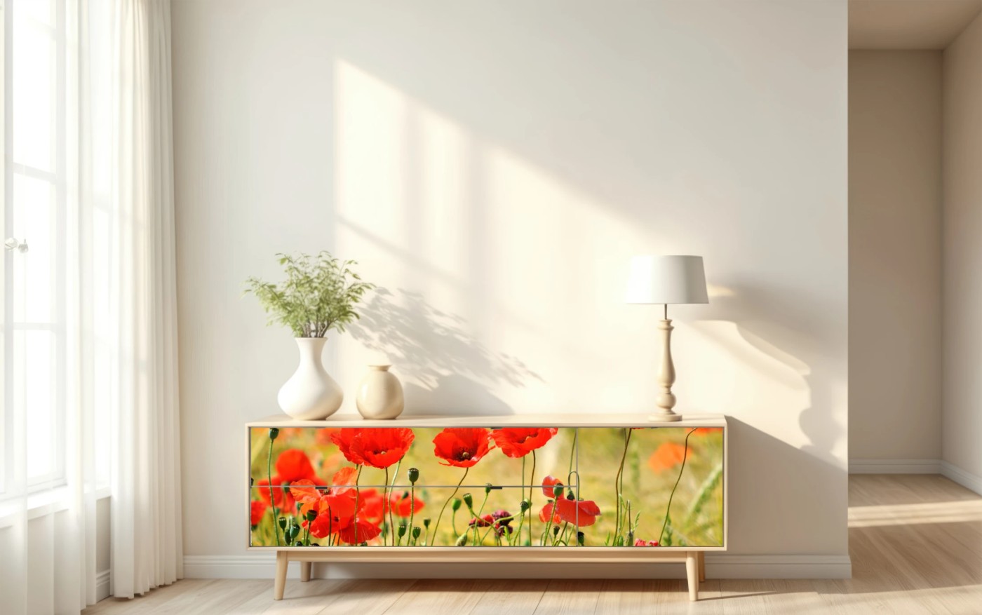 Repositionierbarer Aufkleber Rote mohnwiese im sonnenlicht