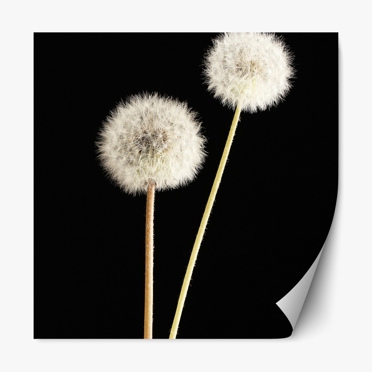 Repositionierbarer Aufkleber Zarte löwenzahnsamen auf schwarzem hintergrund