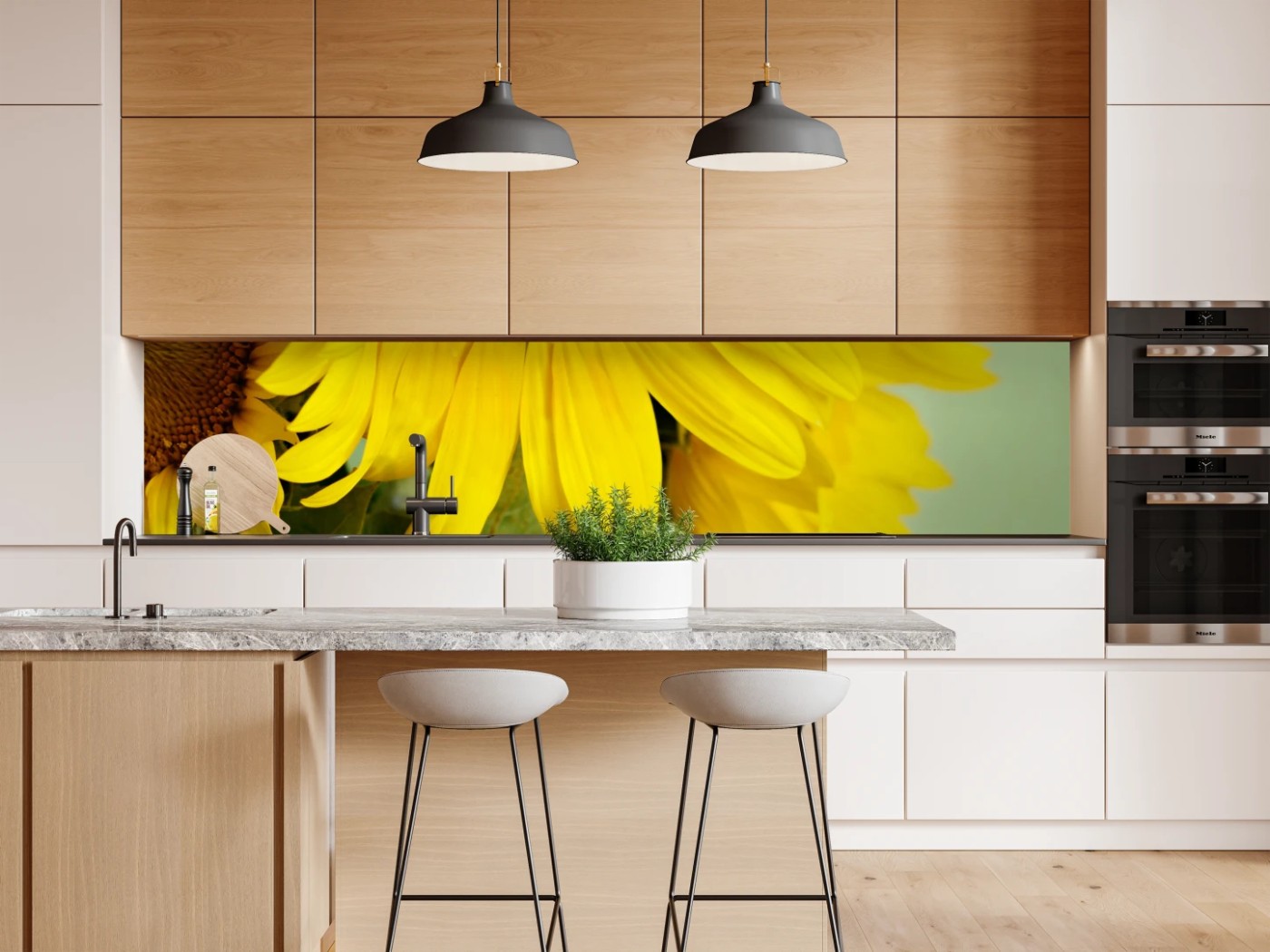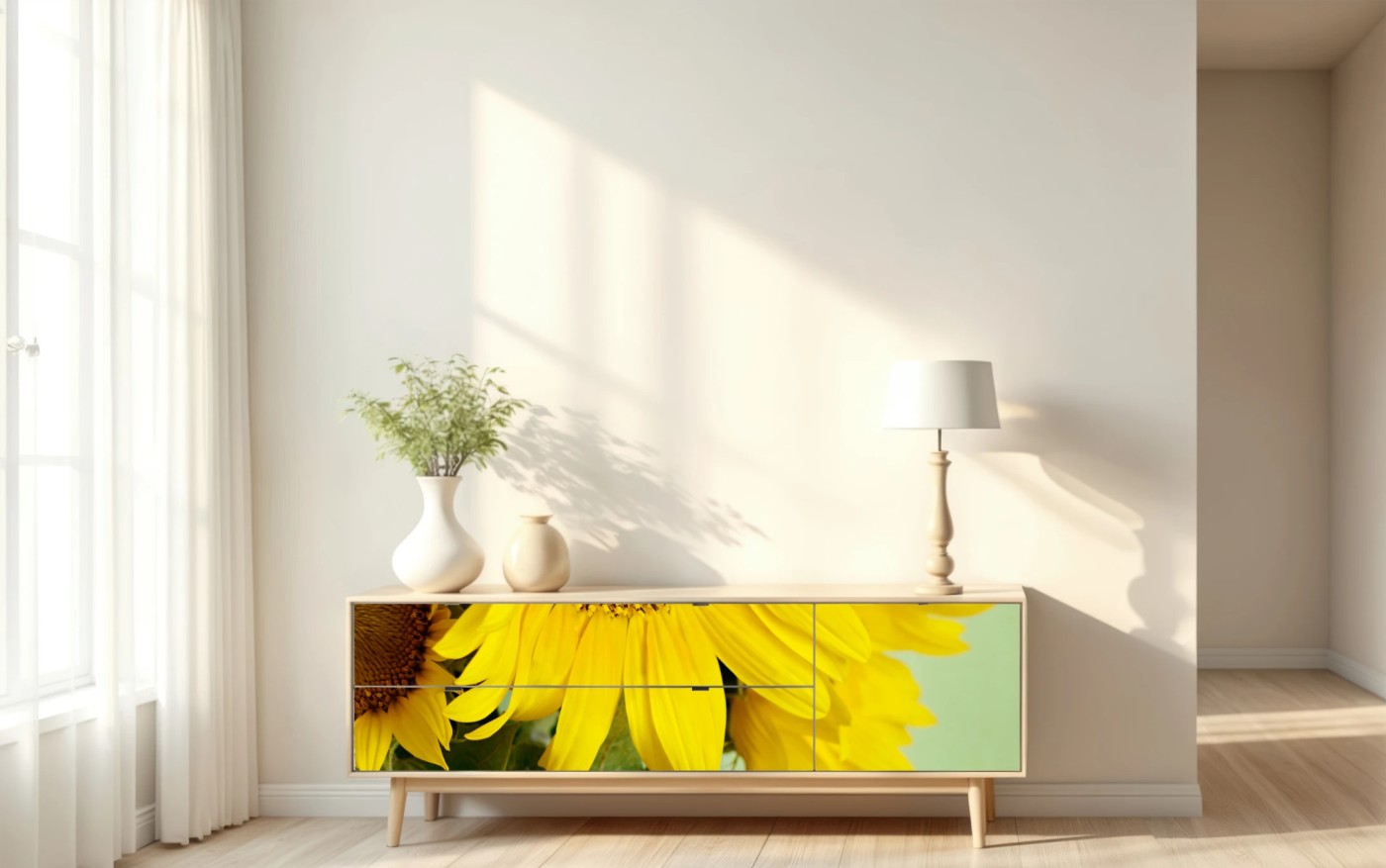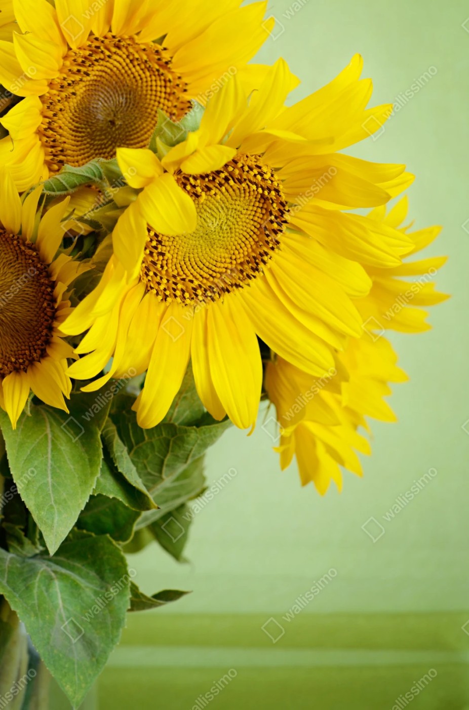 Repositionierbarer Aufkleber Heller sonnenblumenstrauß auf grünem hintergrund