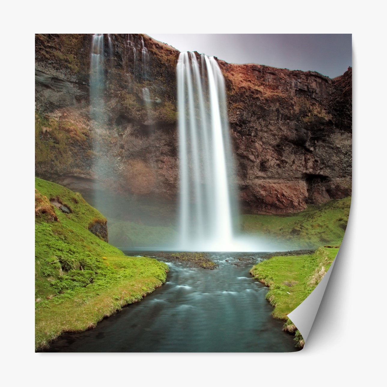 Repositionierbarer Aufkleber Nebeliger wasserfall im üppigen tal
