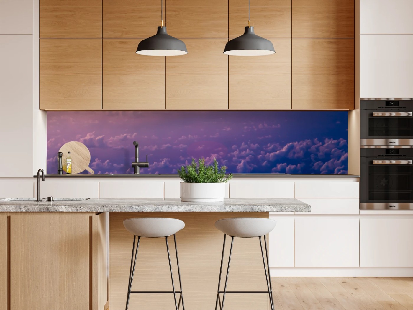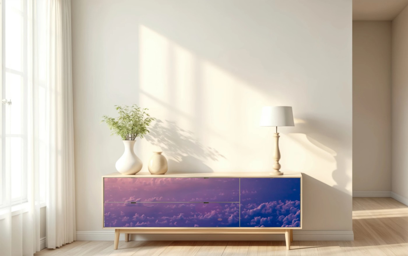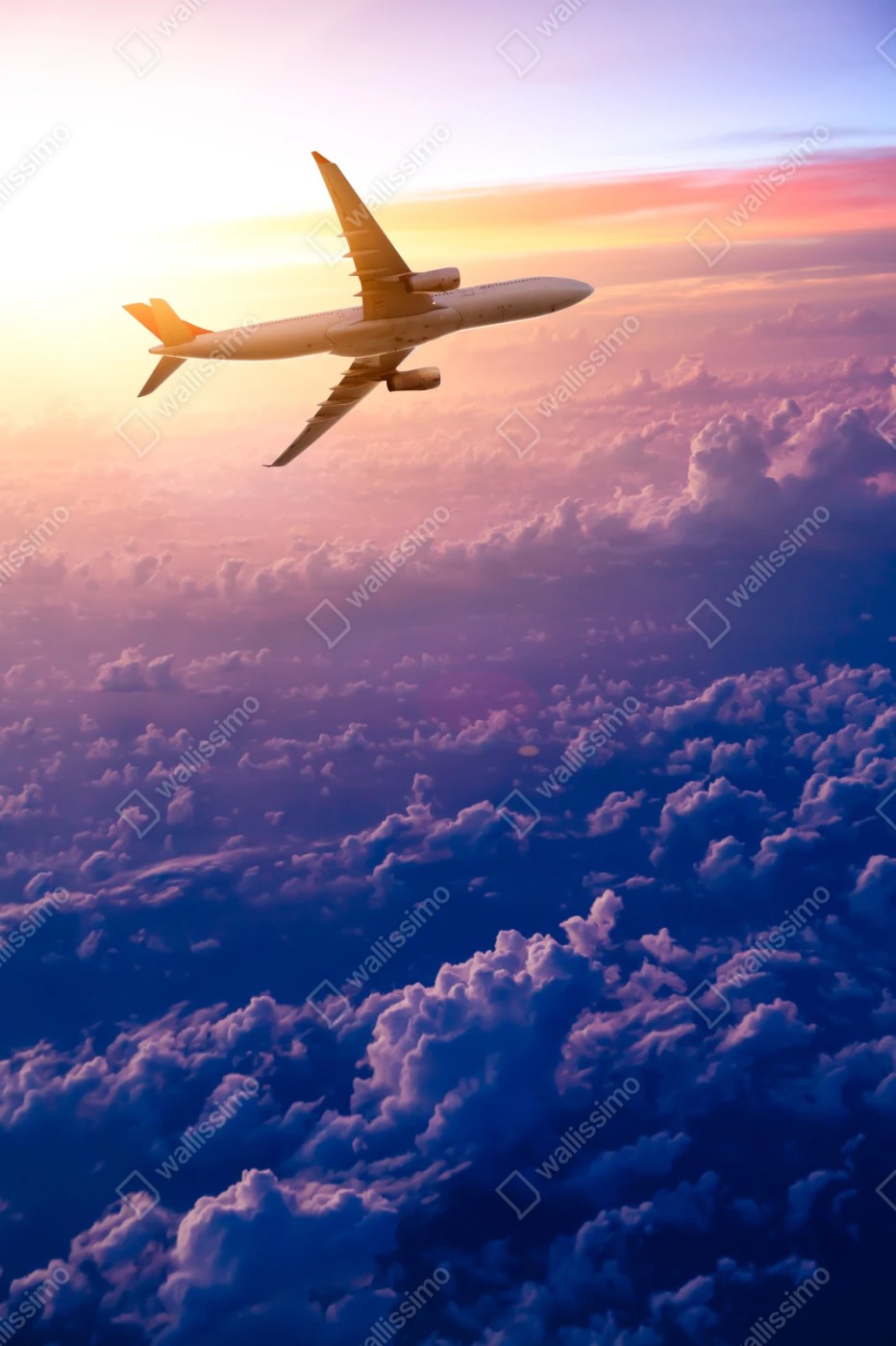 Repositionierbarer Aufkleber Flugzeug über den wolken bei sonnenaufgang