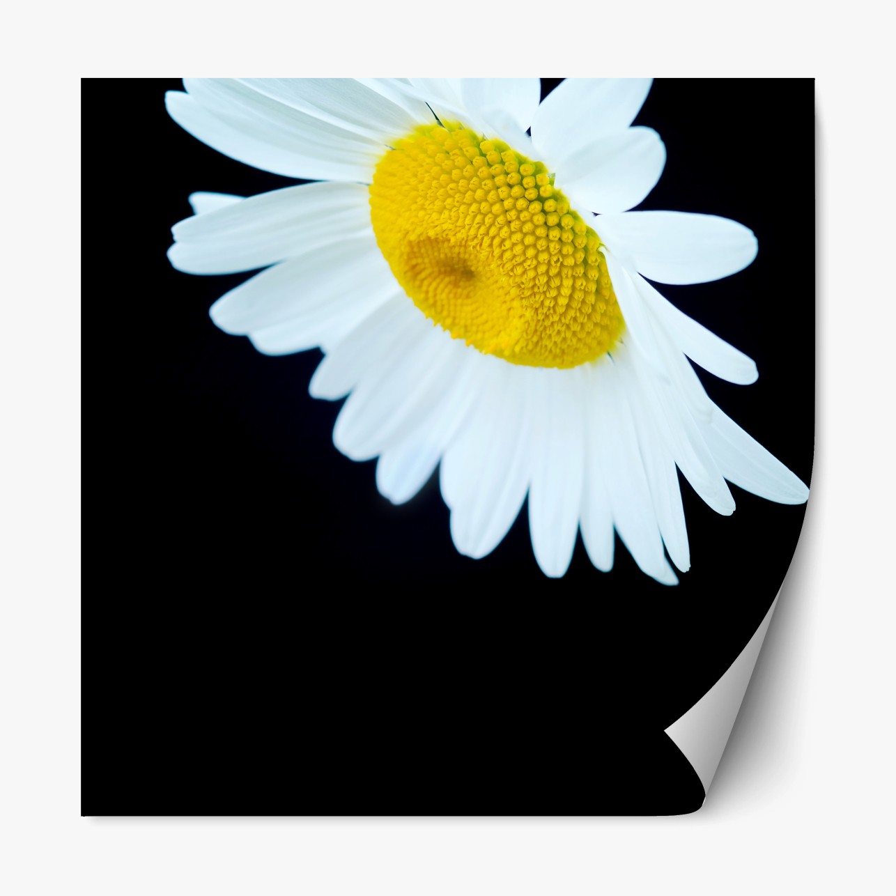 Repositionierbarer Aufkleber Weißes gänseblümchen nahaufnahme vor schwarzem hintergrund