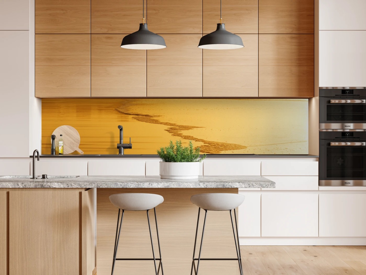 Repositionierbarer Aufkleber Goldener sonnenuntergang am strand von Sopelana