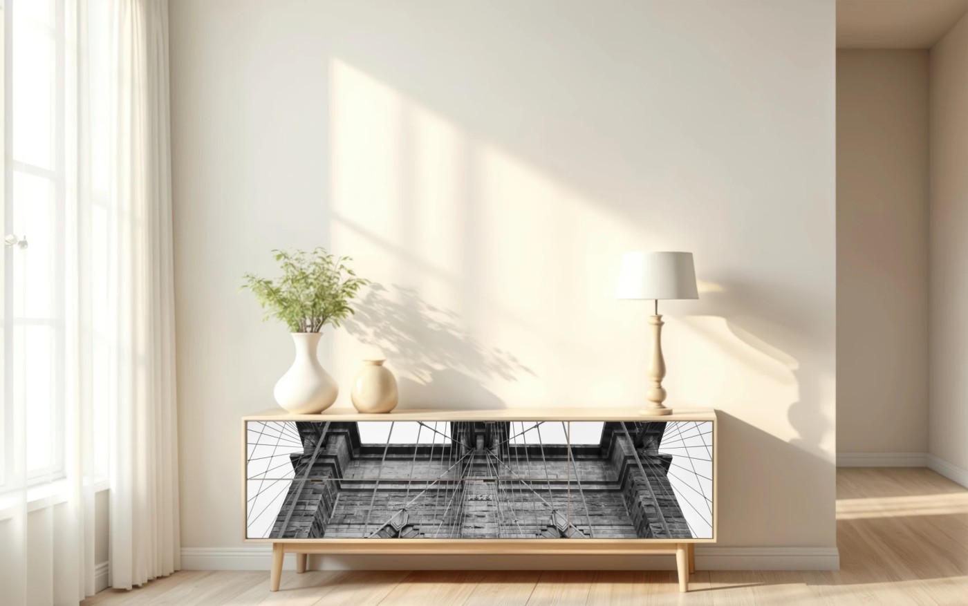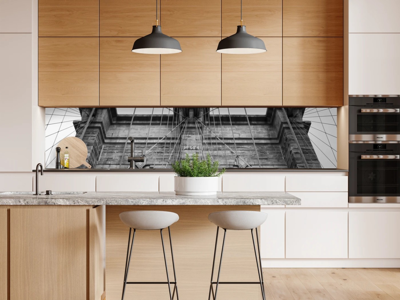 Repositionierbarer Aufkleber Perspektive der Brooklyn Bridge in monochrom