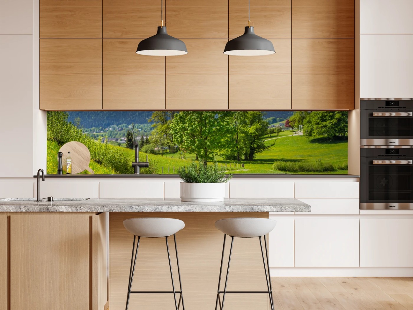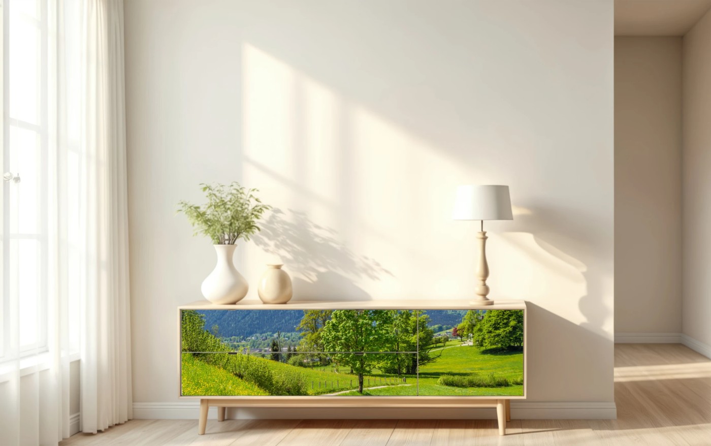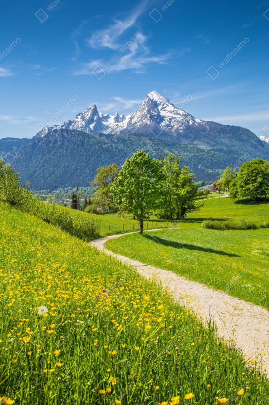 Repositionierbarer Aufkleber Alpenwiese und bergpfad