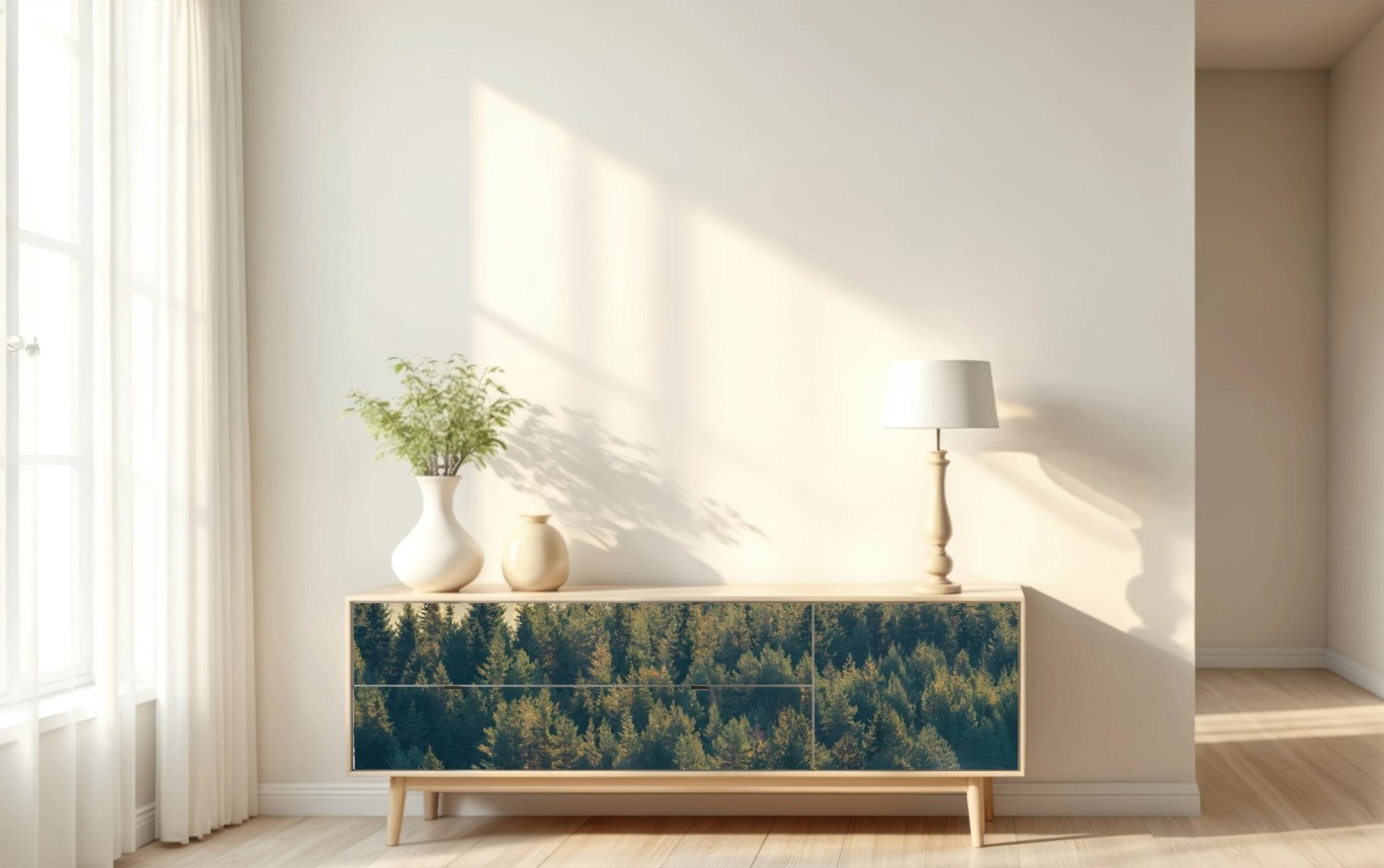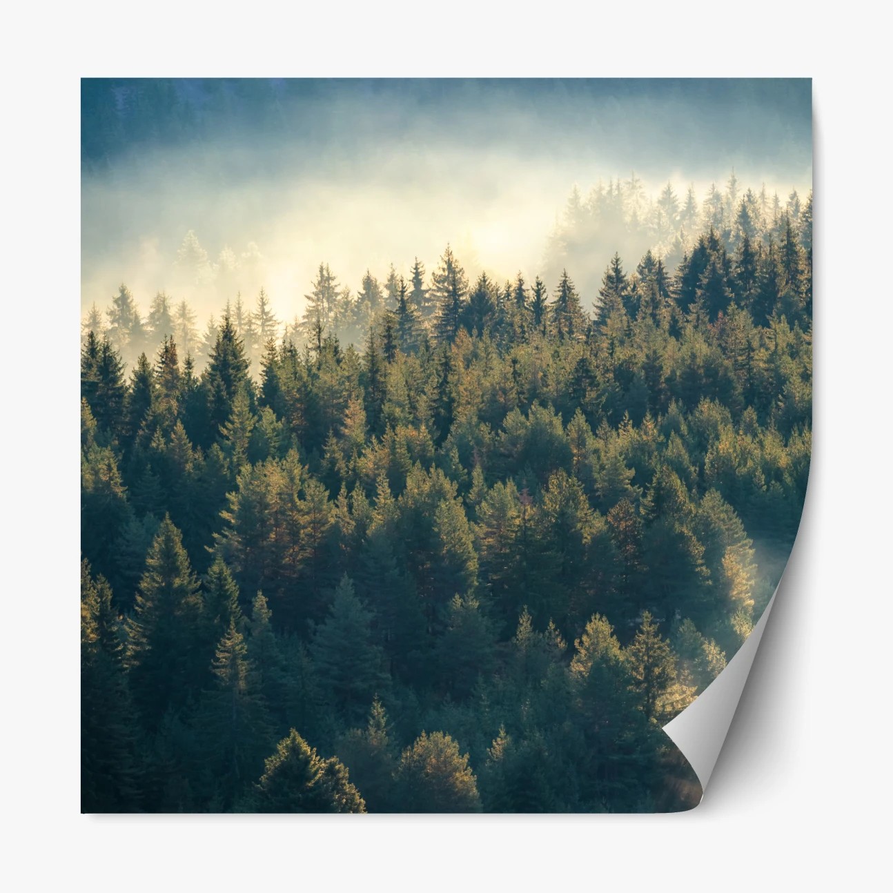 Repositionierbarer Aufkleber Nebliger kiefernwald im morgenlicht