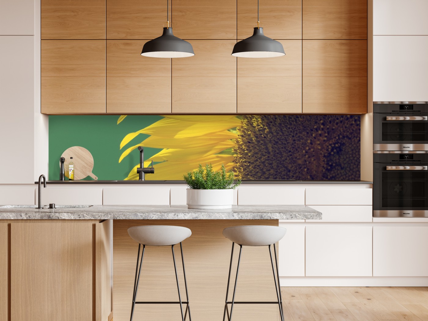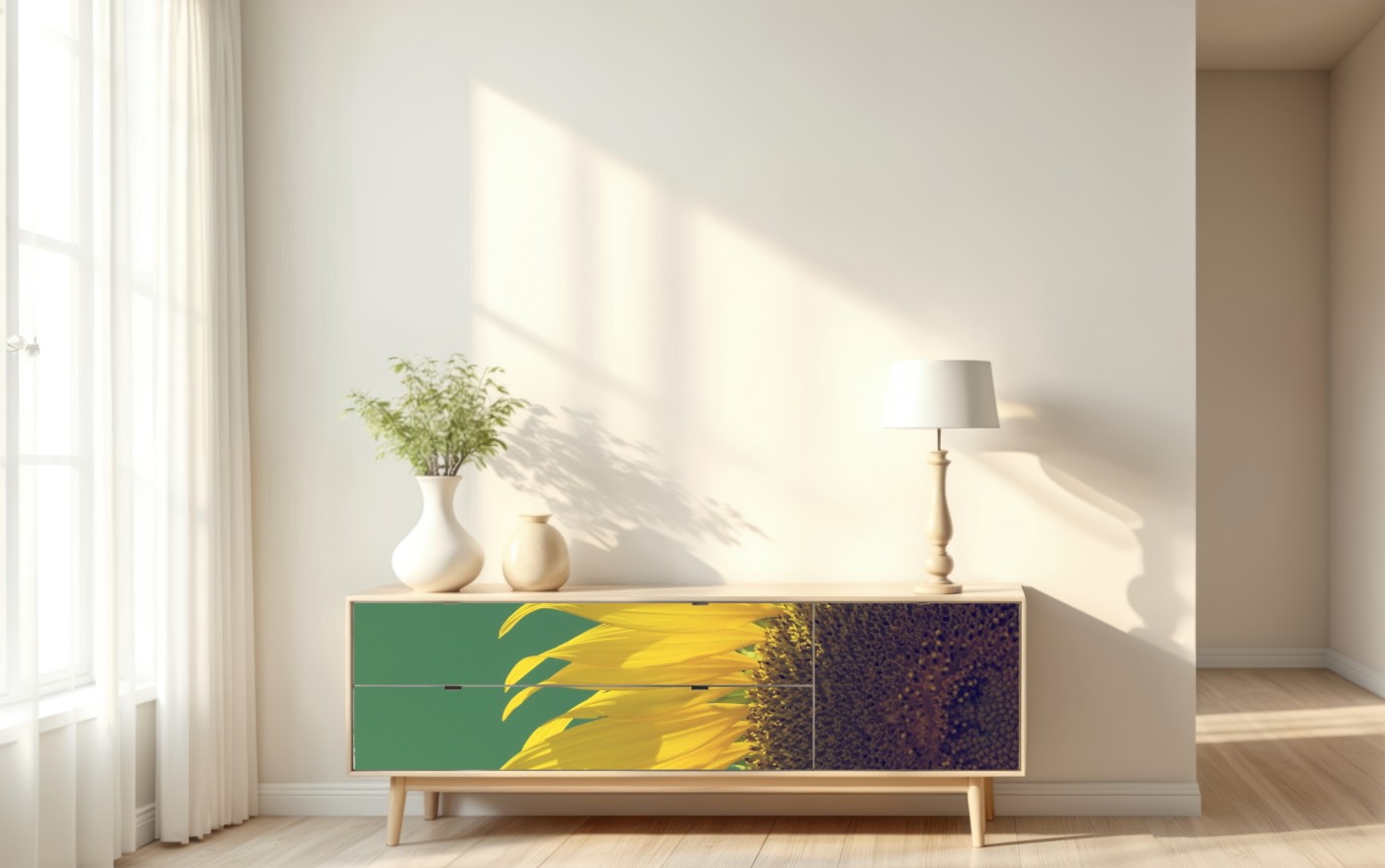 Repositionierbarer Aufkleber Strahlende sonnenblume vor vintage-himmel