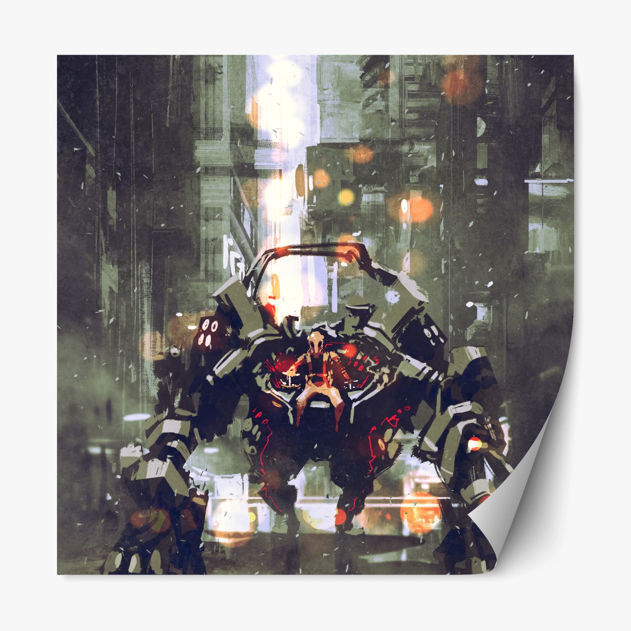 Repositionierbarer Aufkleber Futuristischer mech in neonstadt