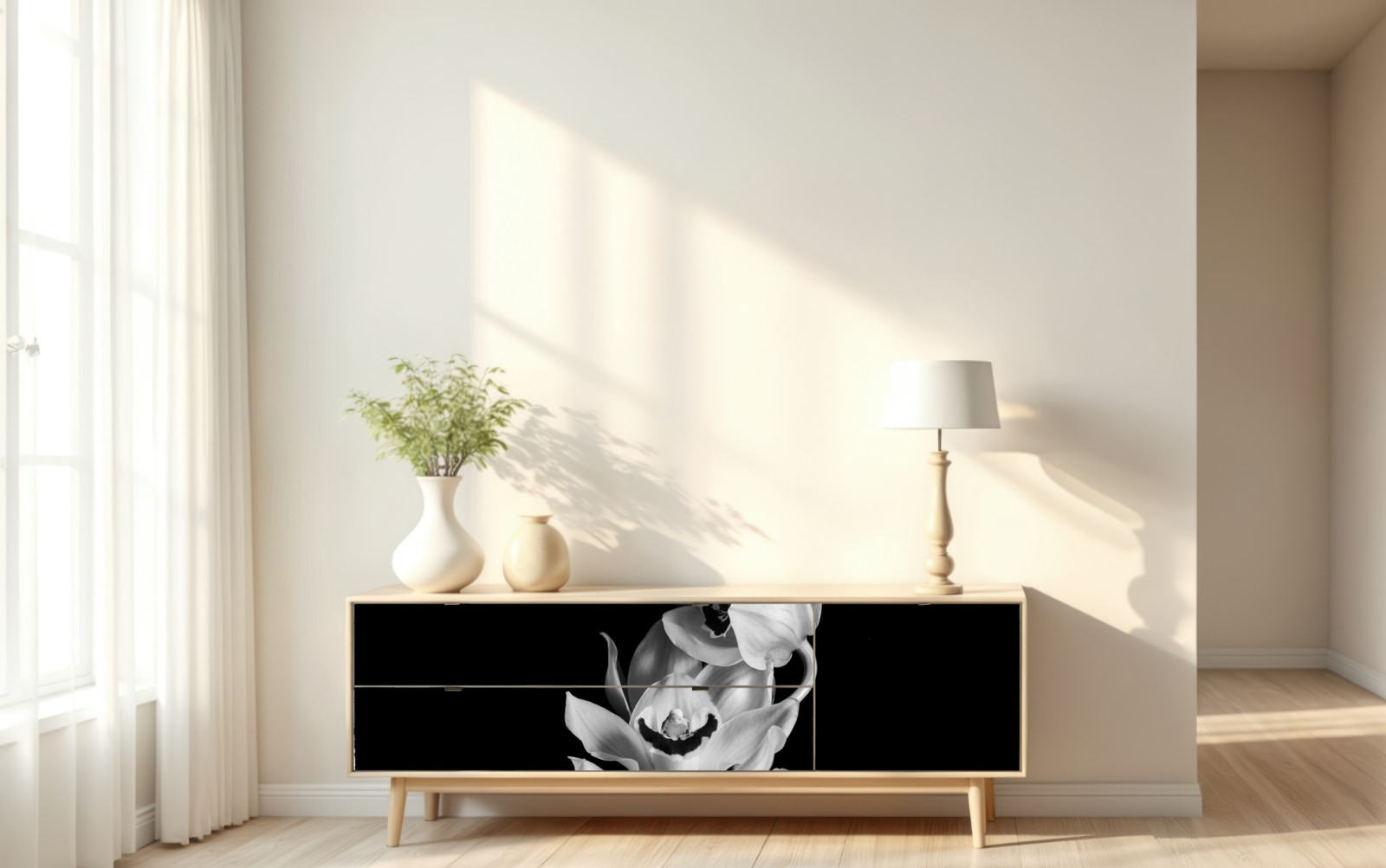 Repositionierbarer Aufkleber Eleganter monochromer orchideenstiel