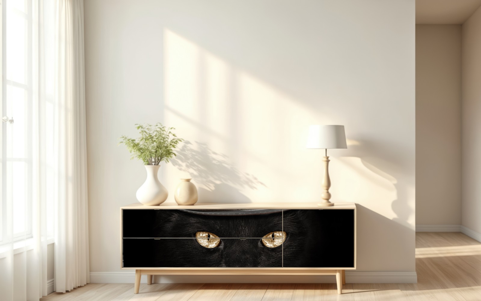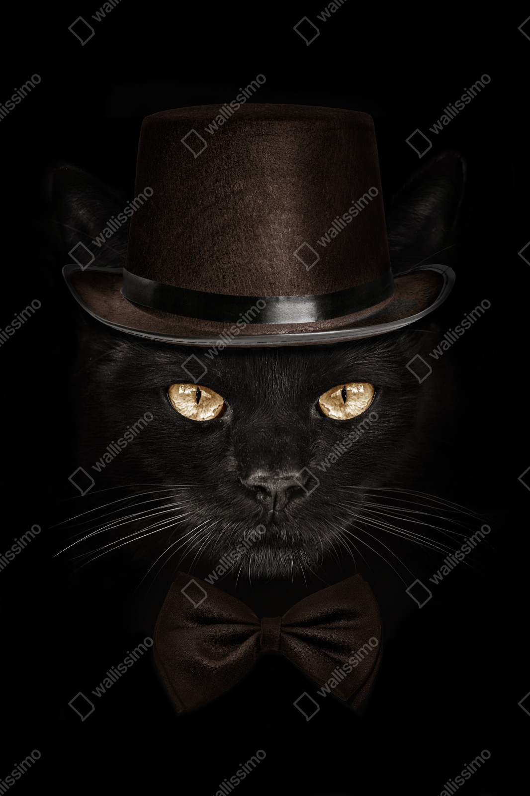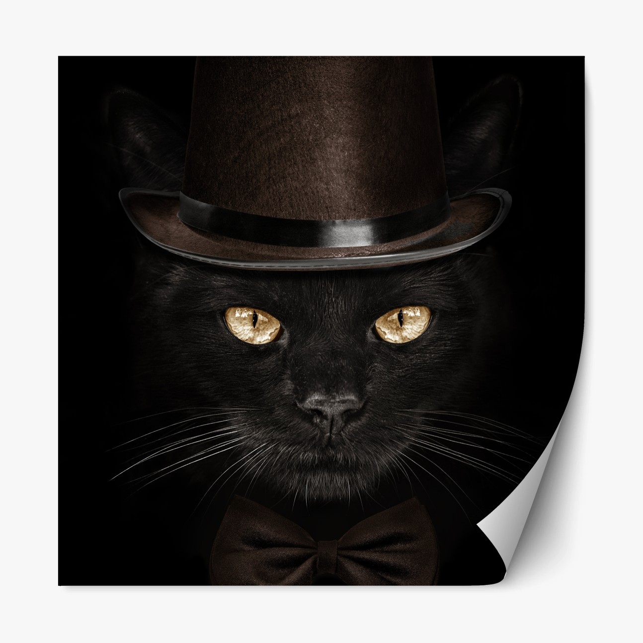 Repositionierbarer Aufkleber Elegante schwarze katze mit zylinder und fliege