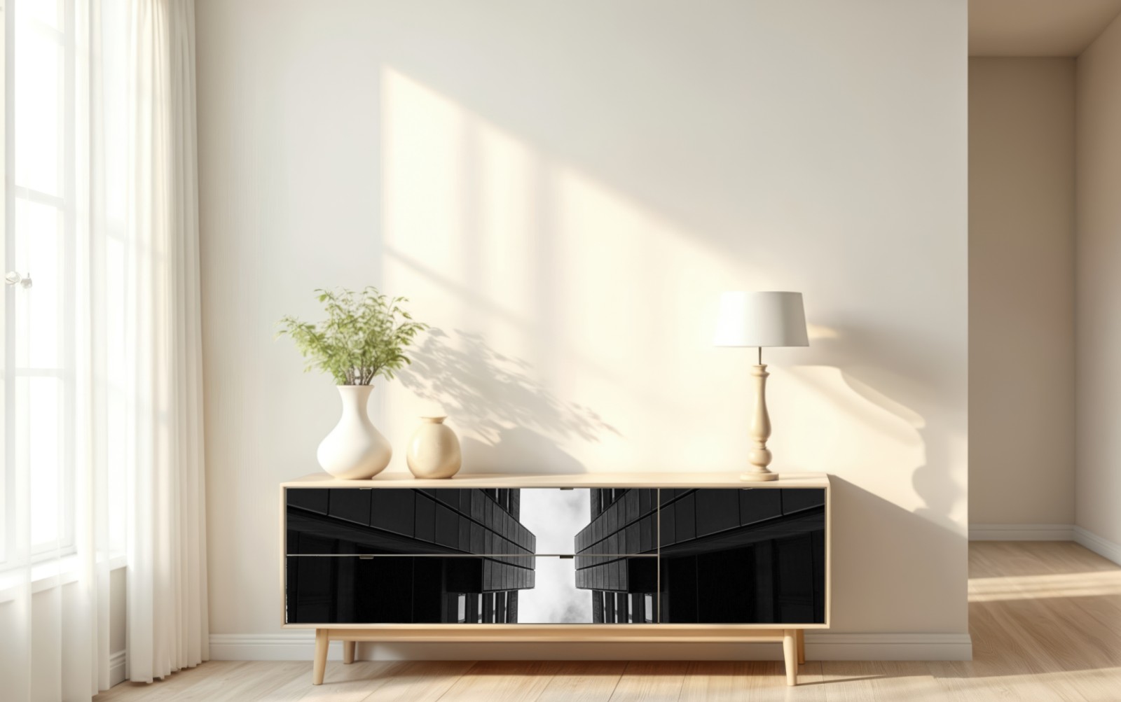 Repositionierbarer Aufkleber Vertikale städtische symmetrie in monochrom