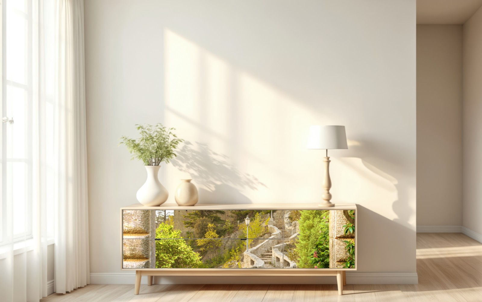 Repositionierbarer Aufkleber Sonniger gartenweg zum schloss