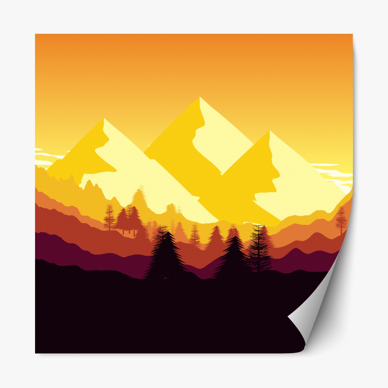Repositionierbarer Aufkleber Goldener sonnenuntergang über bergen