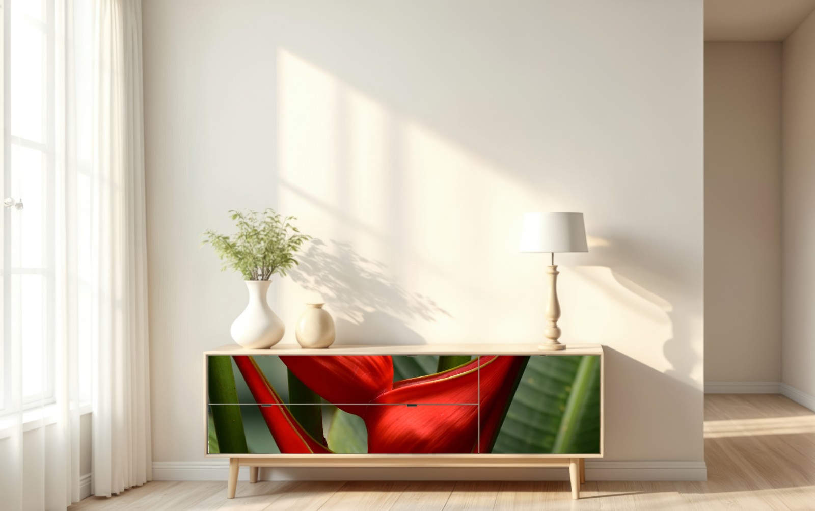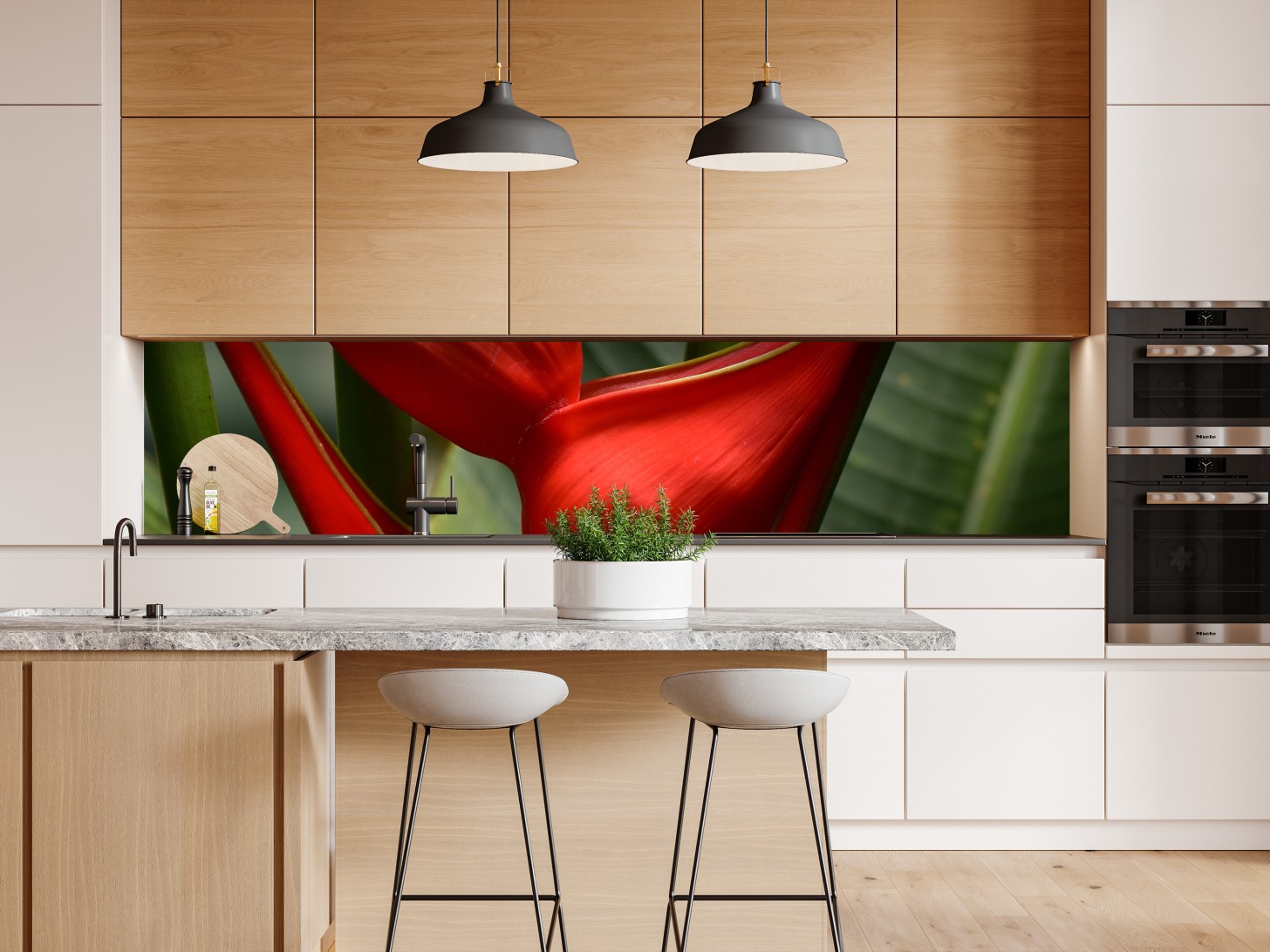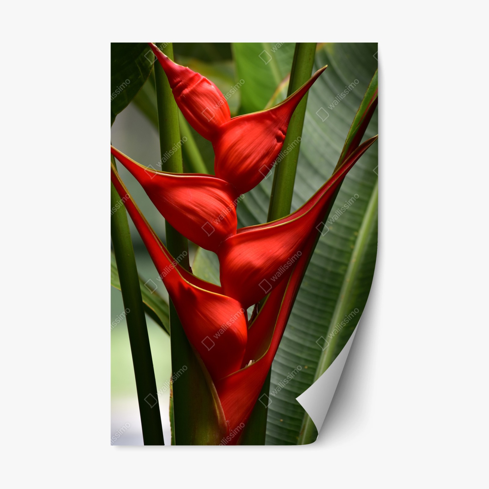 Repositionierbarer Aufkleber Leuchtende rote heliconia blüte
