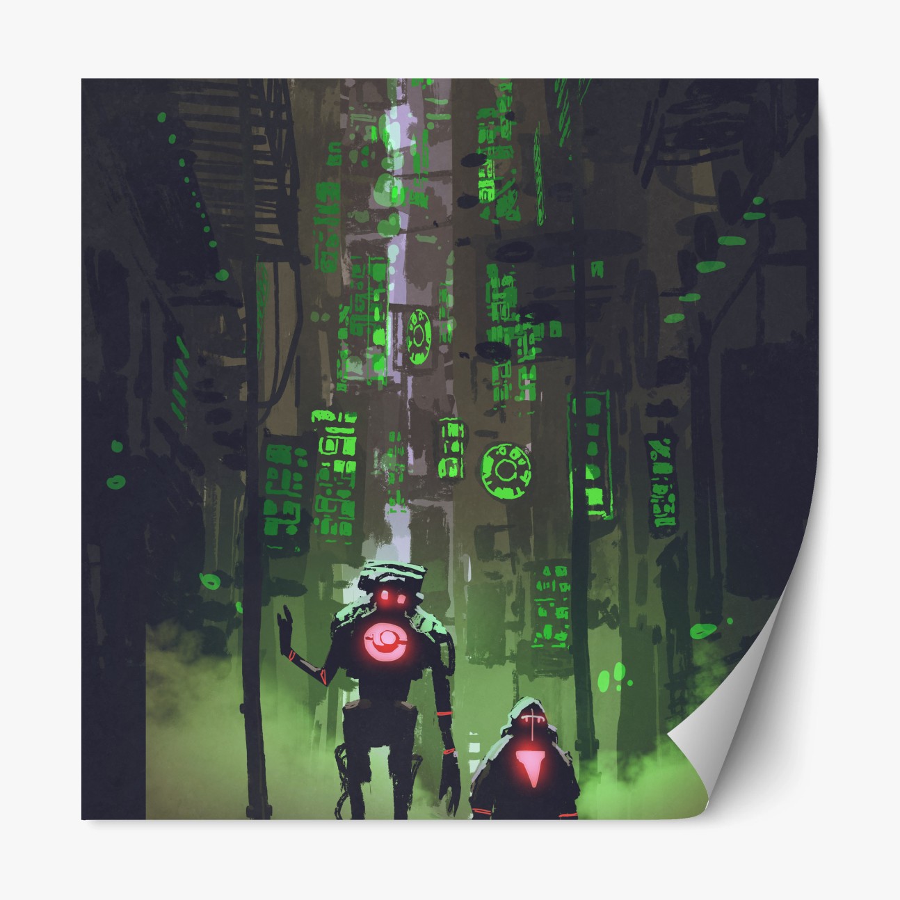 Repositionierbarer Aufkleber Roboter in der neon gasse