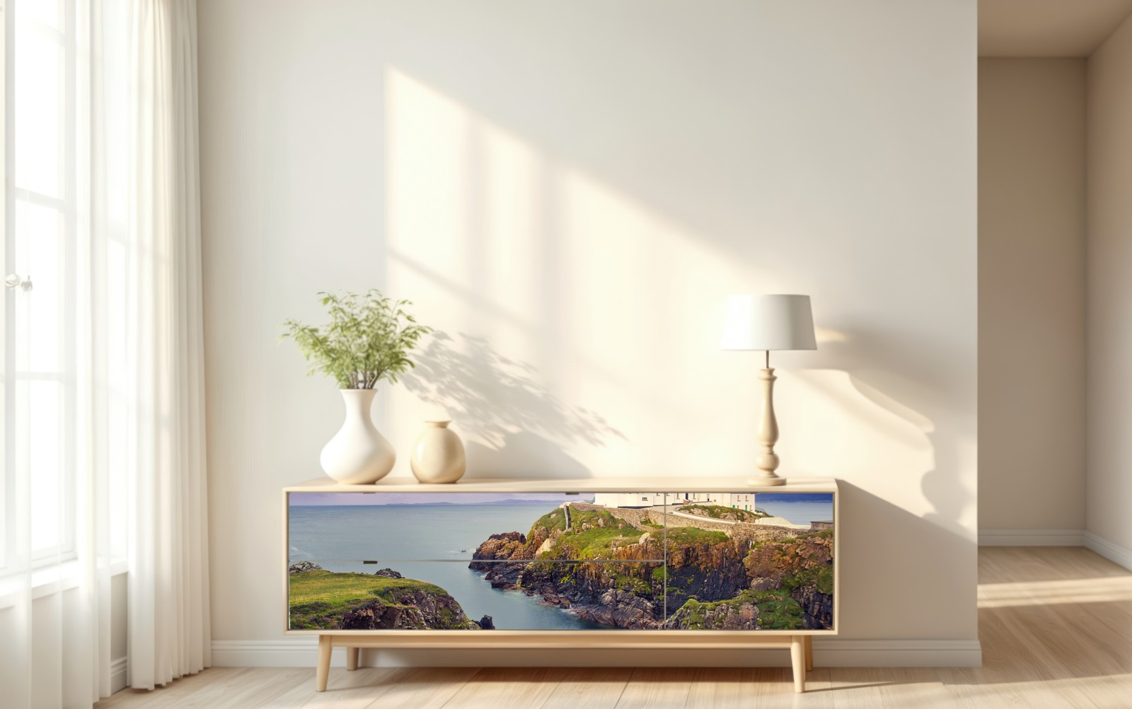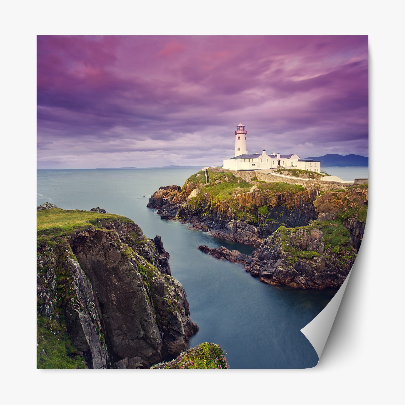 Repositionierbarer Aufkleber Lila leuchtturm an steiler küste