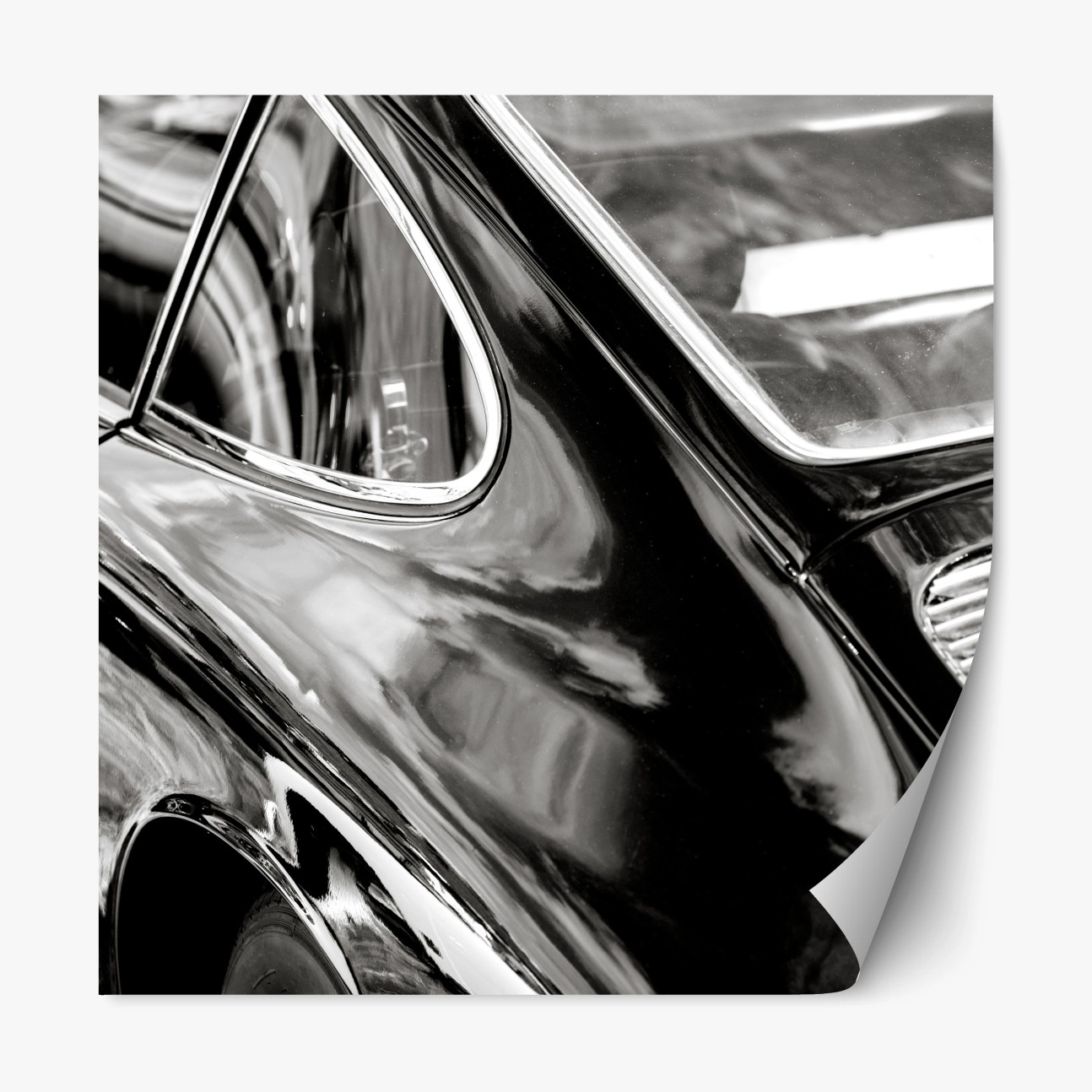 Repositionierbarer Aufkleber Oldtimer rückansicht detail in schwarzweiß