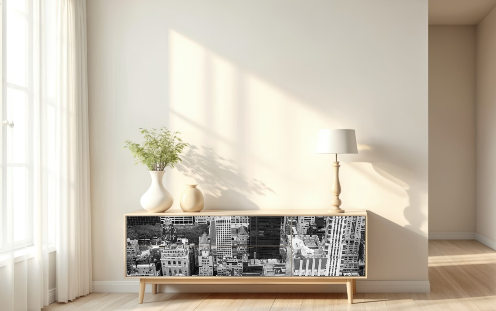 Repositionierbarer Aufkleber Schwarzweiße stadtsilhouette