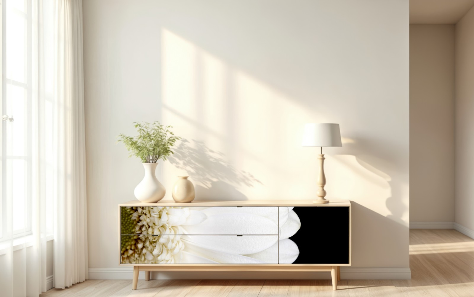 Repositionierbarer Aufkleber Weiße gerbera auf schwarzem hintergrund minimalistische nahaufnahme