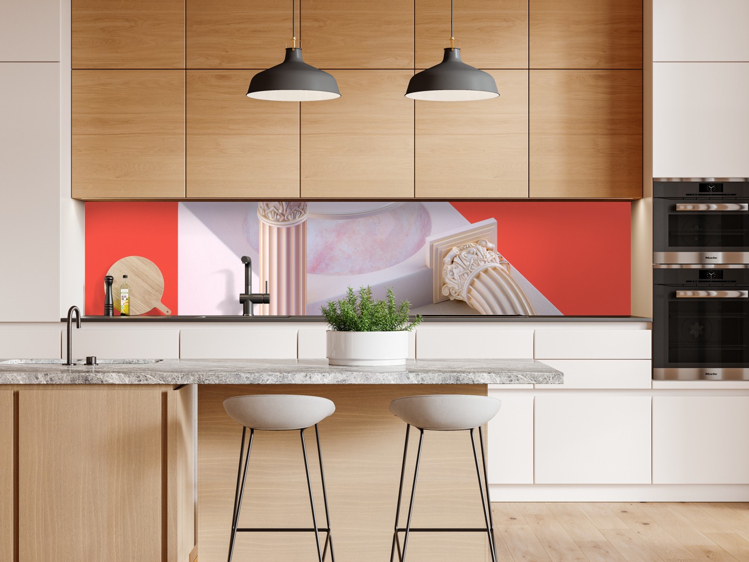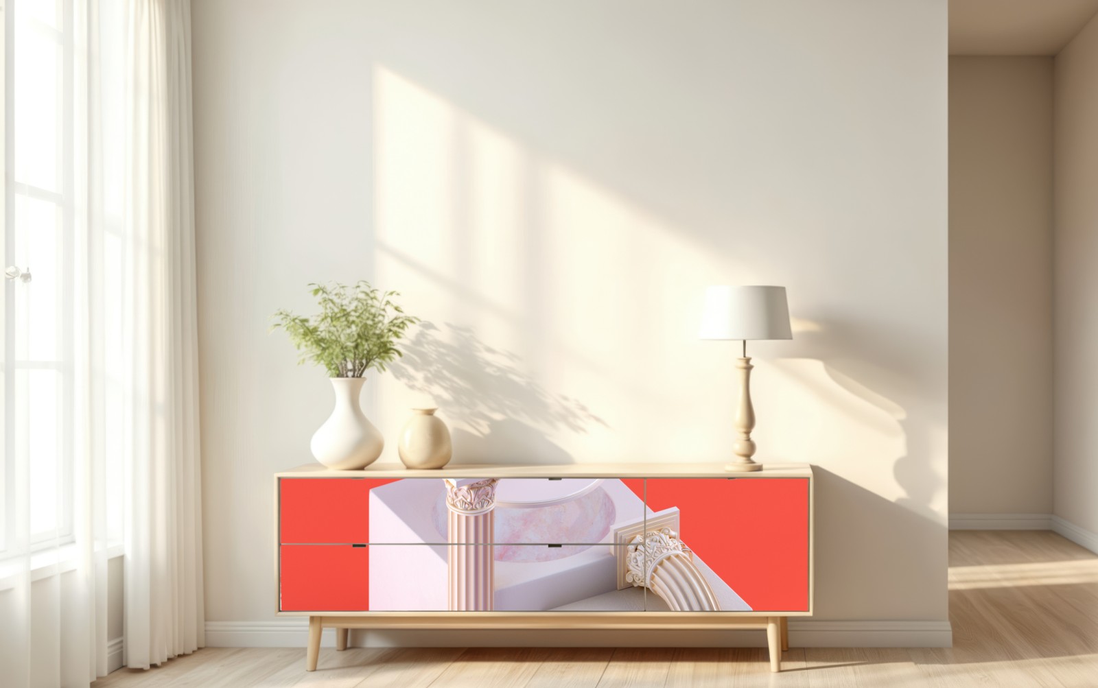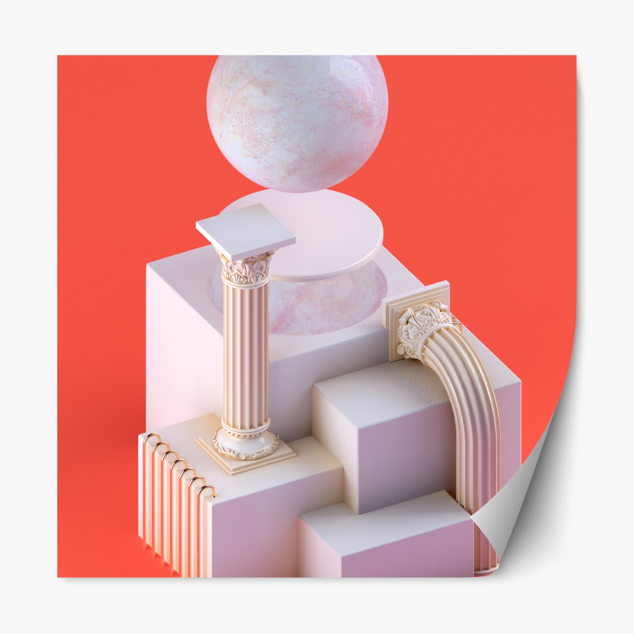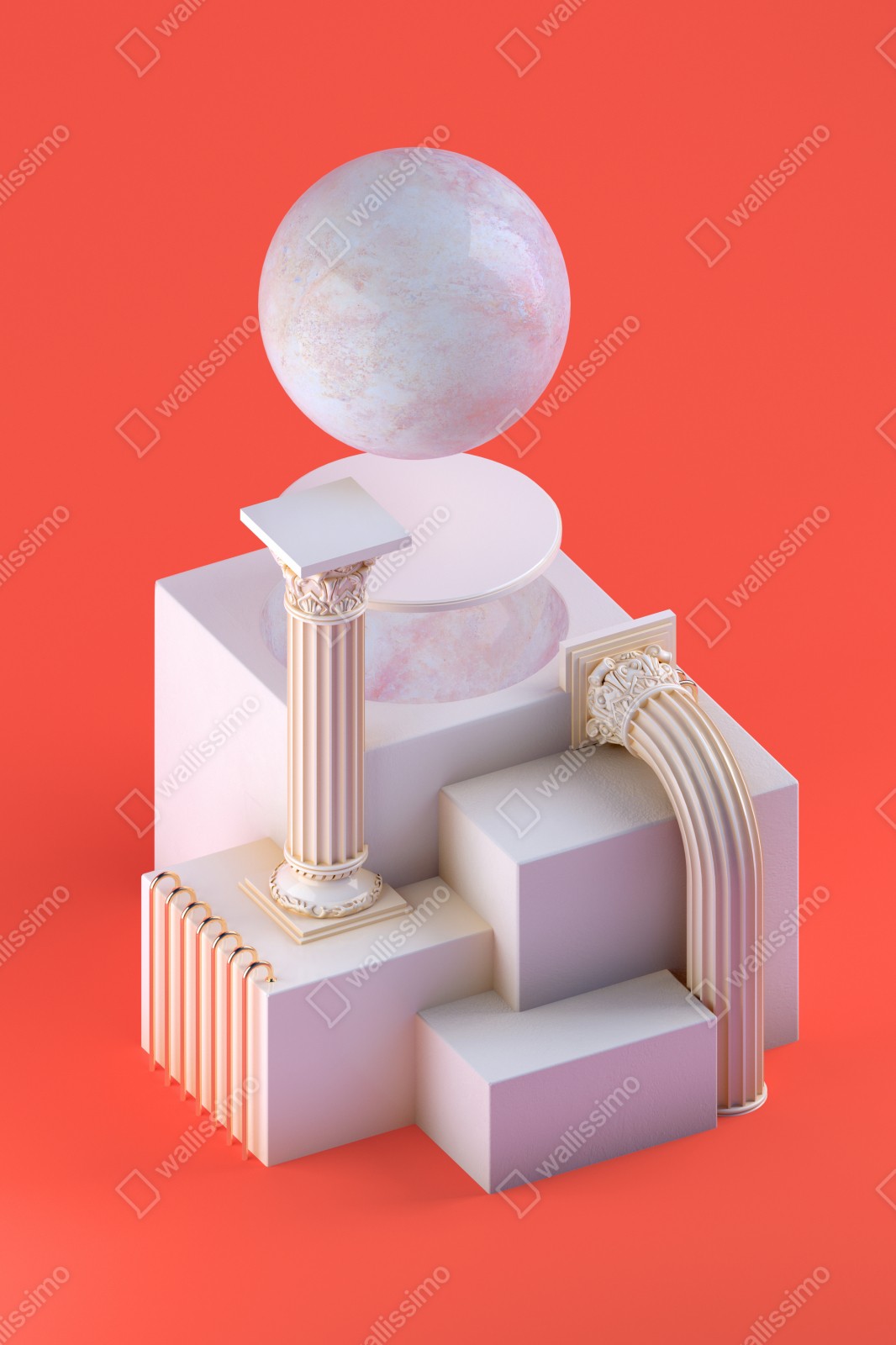 Repositionierbarer Aufkleber Marmorkugel und klassische säulen auf orange