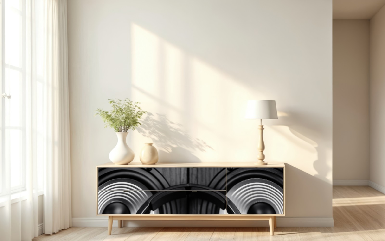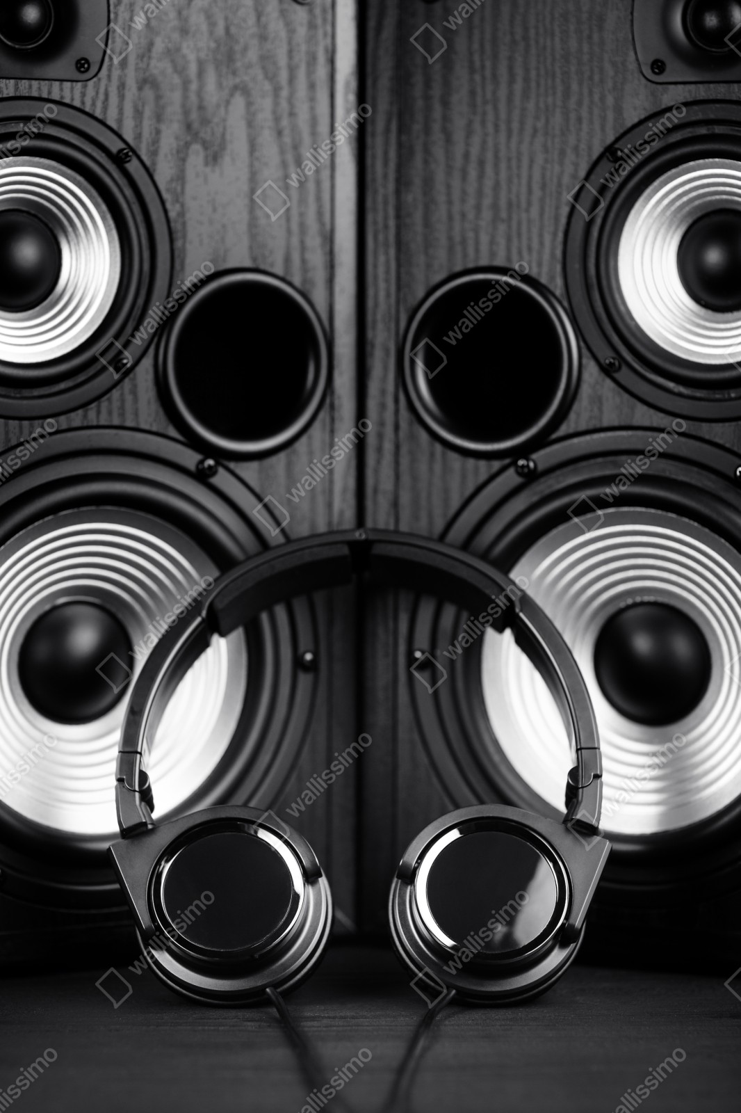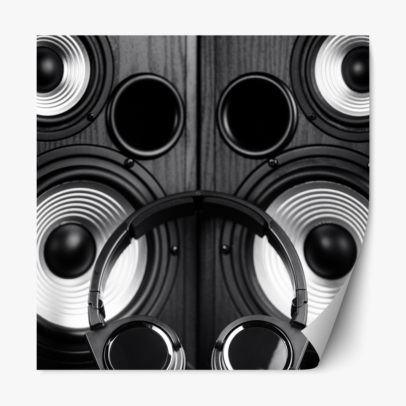 Repositionierbarer Aufkleber Monochromes audio-ensemble mit kopfhörern und lautsprechern