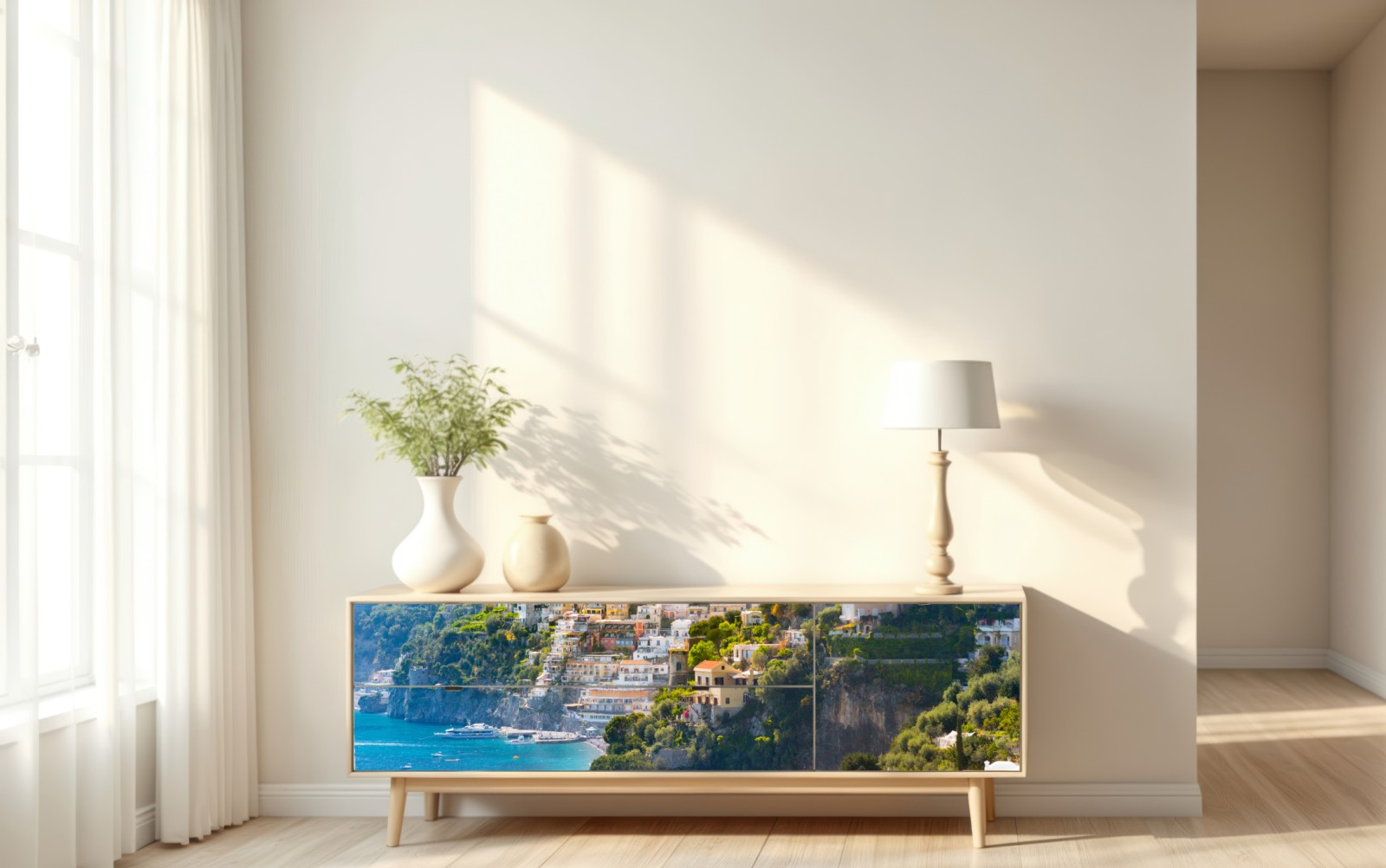 Repositionierbarer Aufkleber Positano küstenpanorama an der klippe