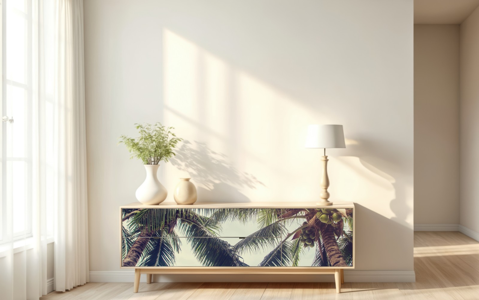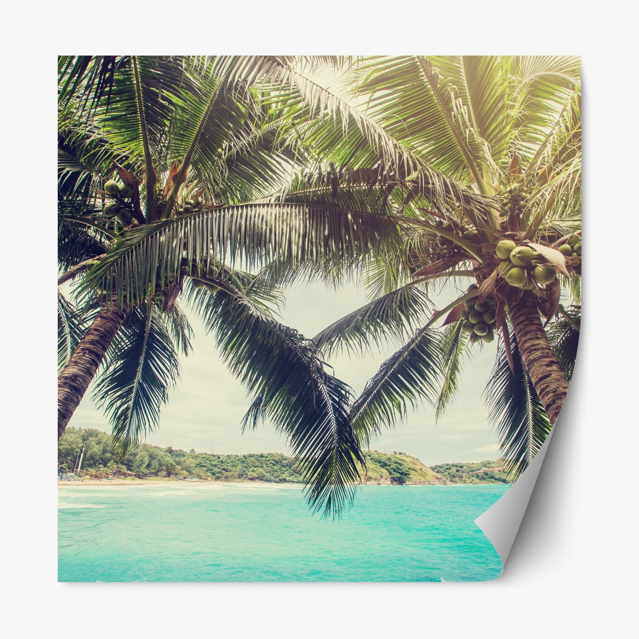 Repositionierbarer Aufkleber Tropische kokospalmen am türkisfarbenen meer