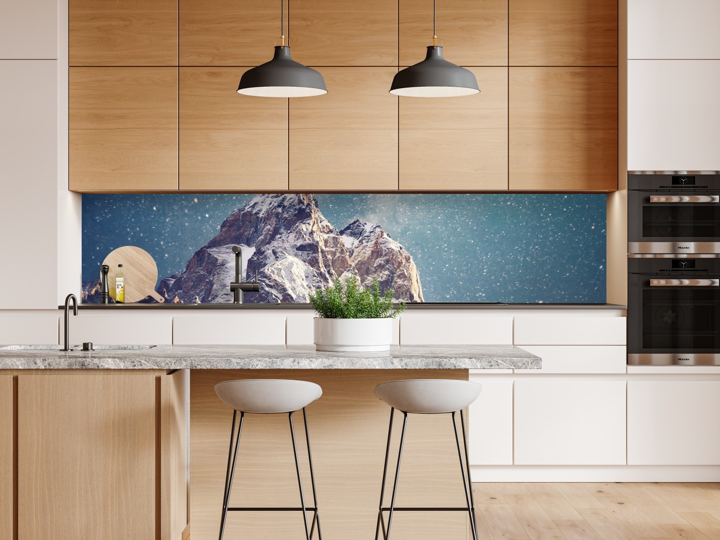 Repositionierbarer Aufkleber Sternennacht über Ushba