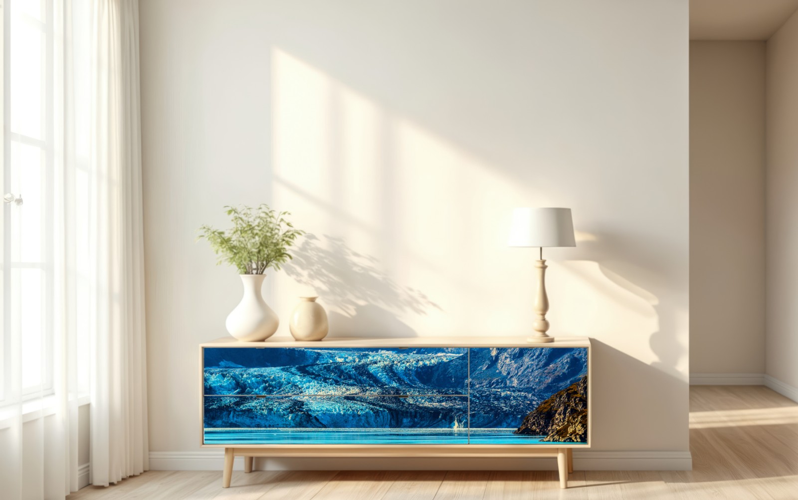 Repositionierbarer Aufkleber Majestätischer alpiner gletscher mit spiegelung