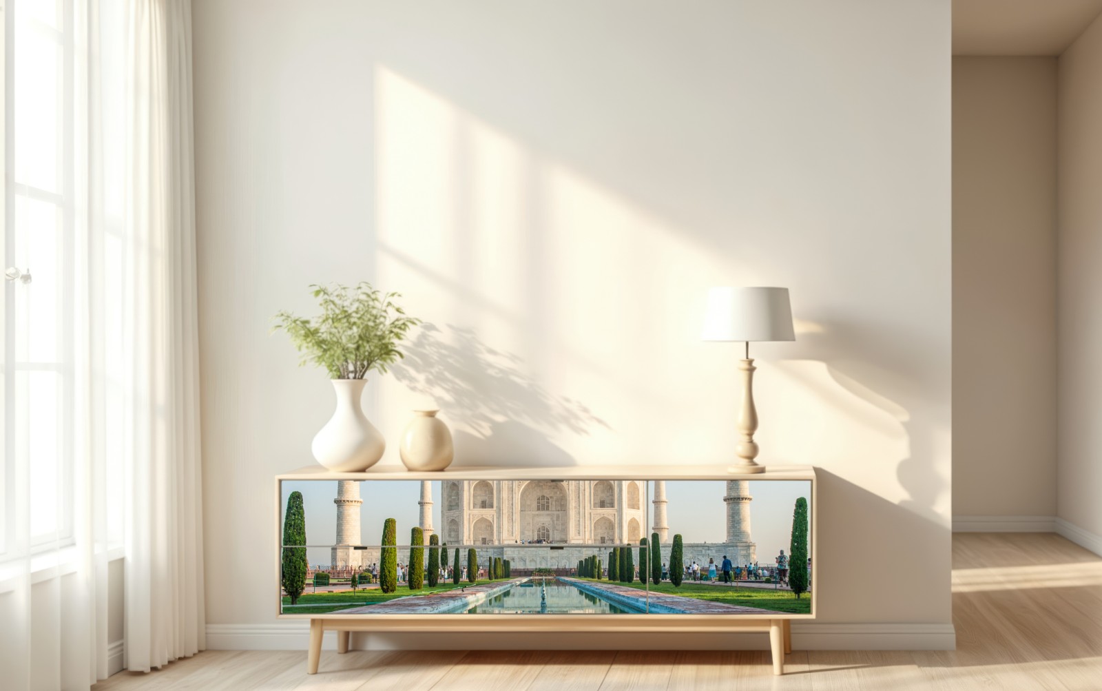 Repositionierbarer Aufkleber Taj Mahal spiegelung im morgendlichen licht