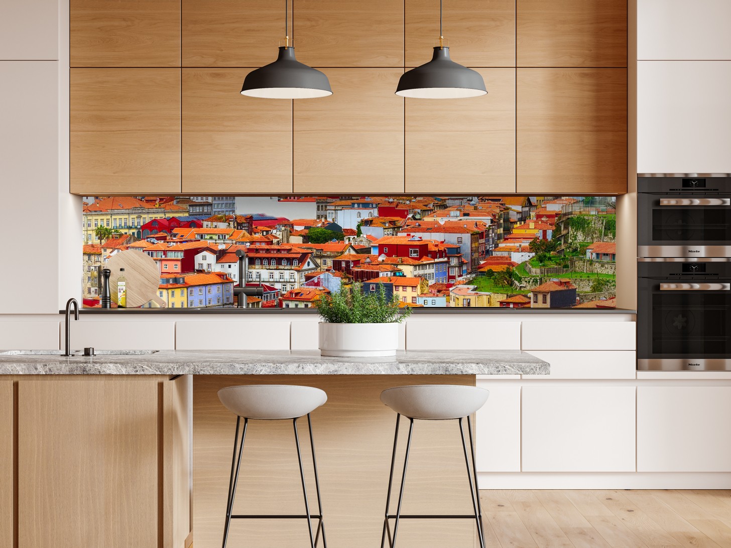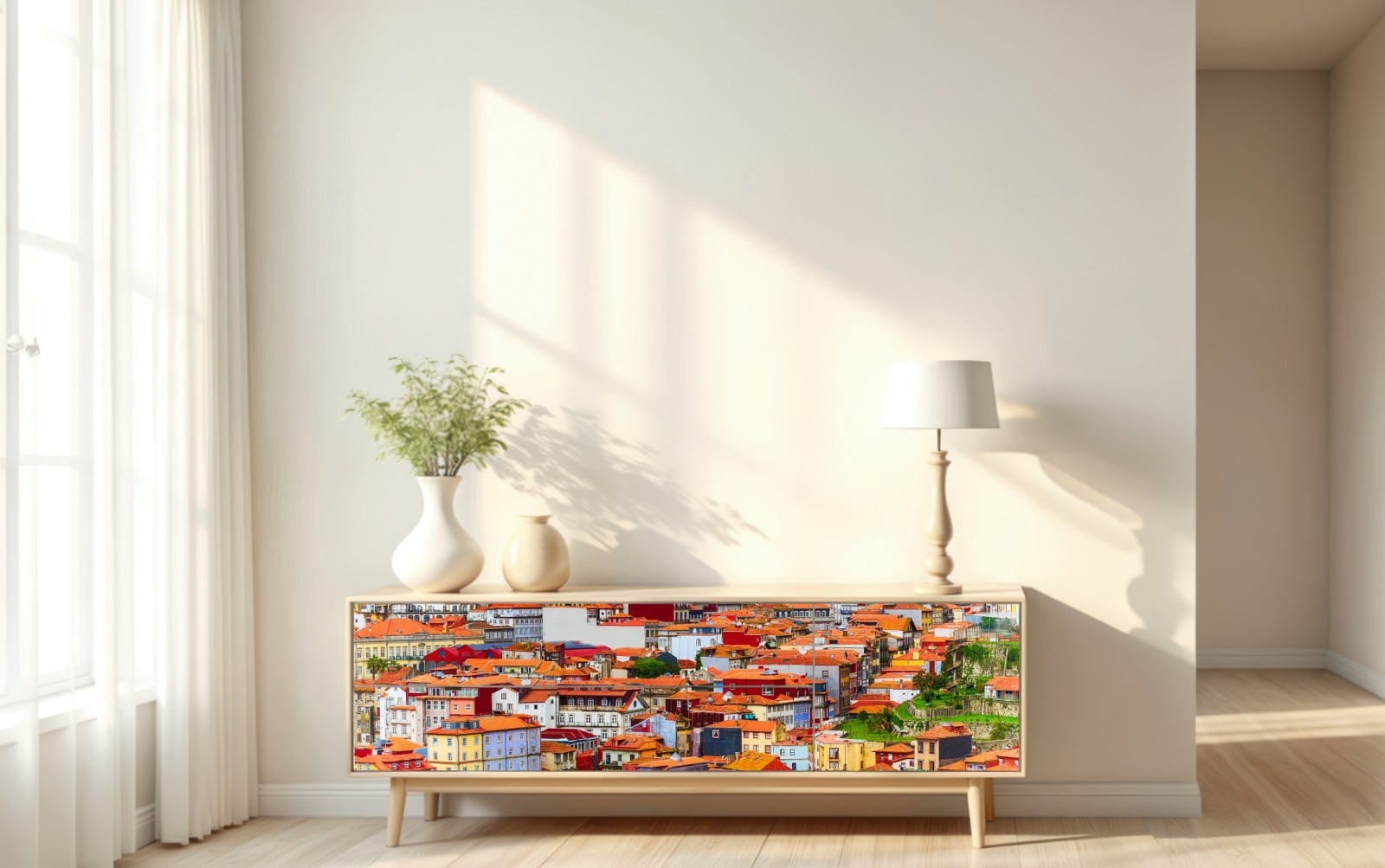 Repositionierbarer Aufkleber Porto buntes uferpanorama