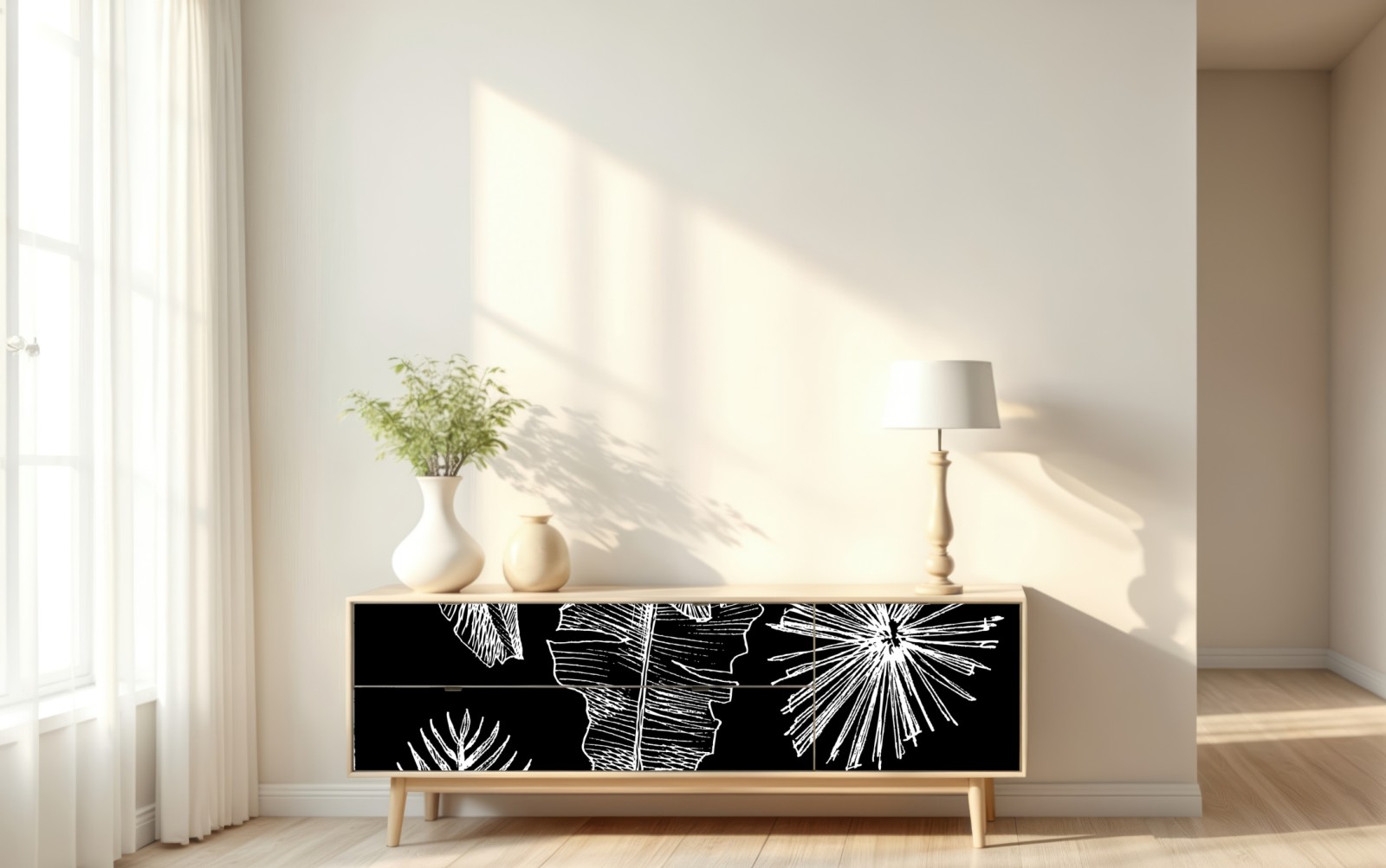 Repositionierbarer Aufkleber Monochrome blattkomposition