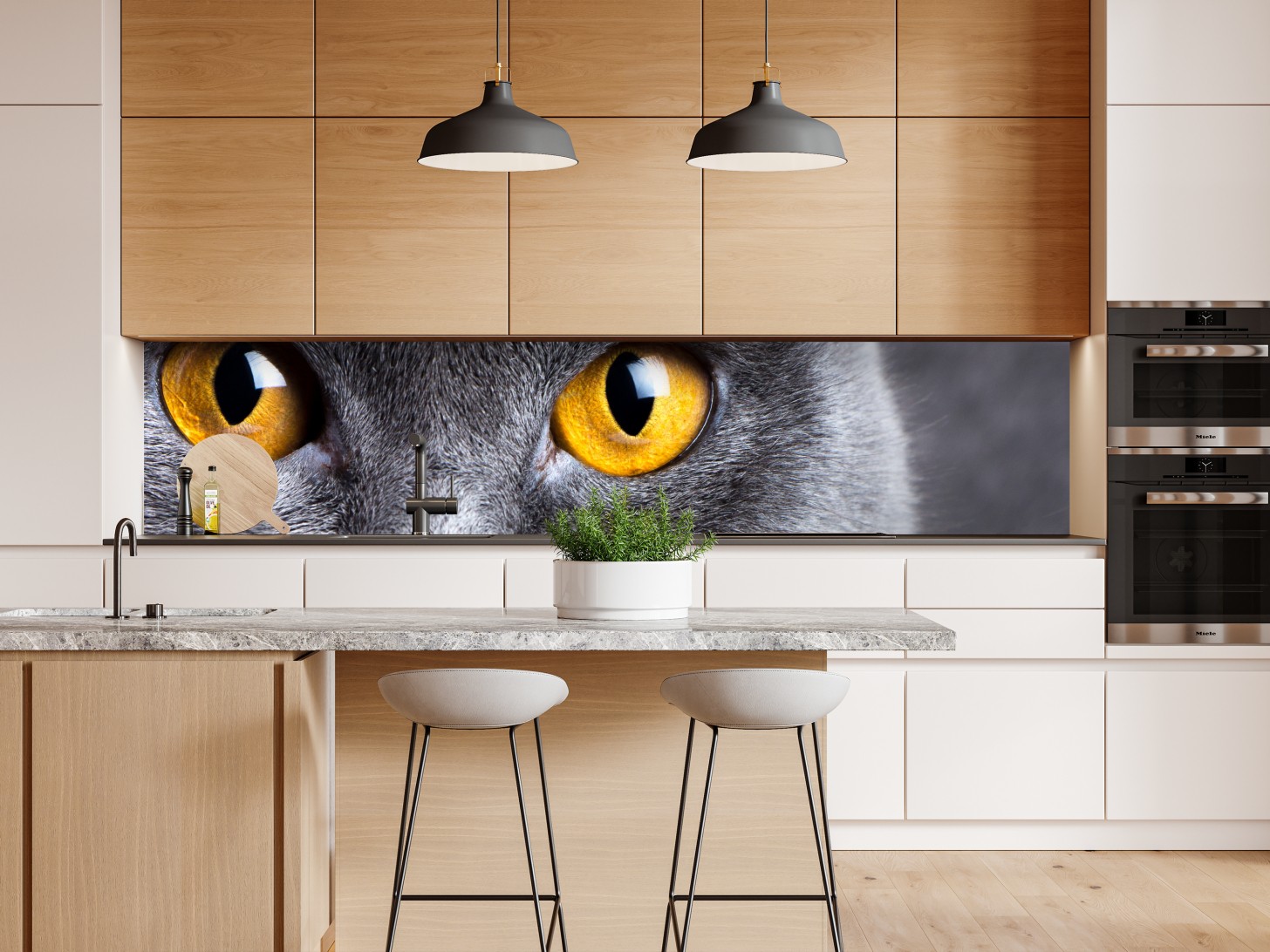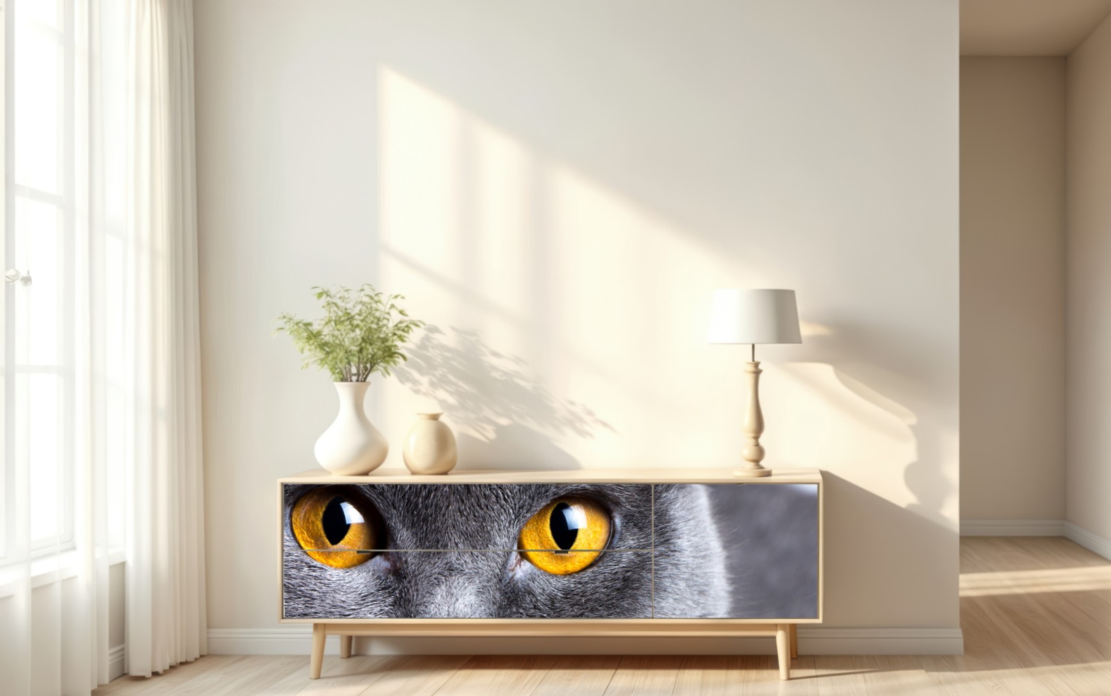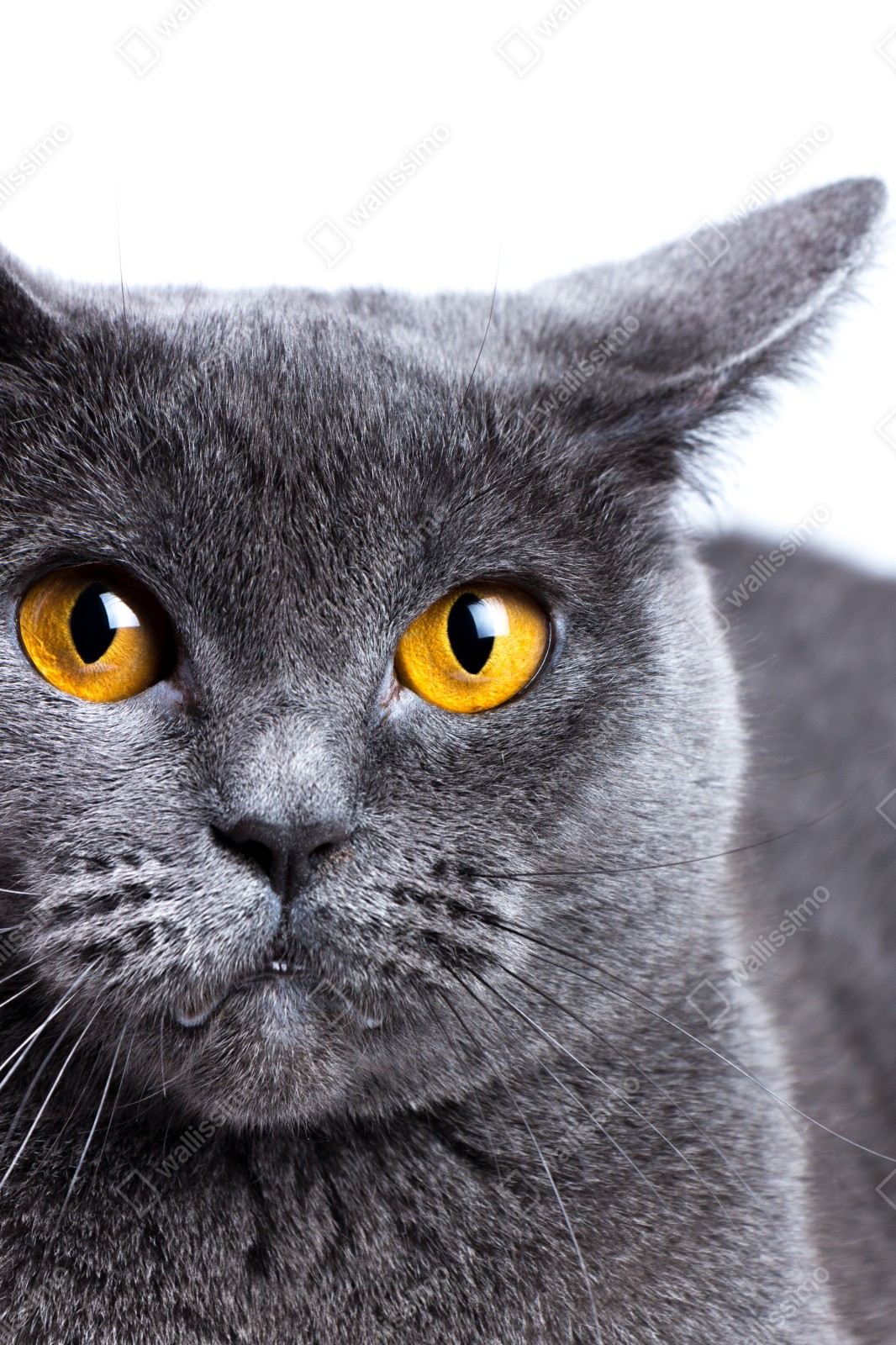Repositionierbarer Aufkleber Ausdrucksstarkes porträt einer grauen katze mit goldenen augen