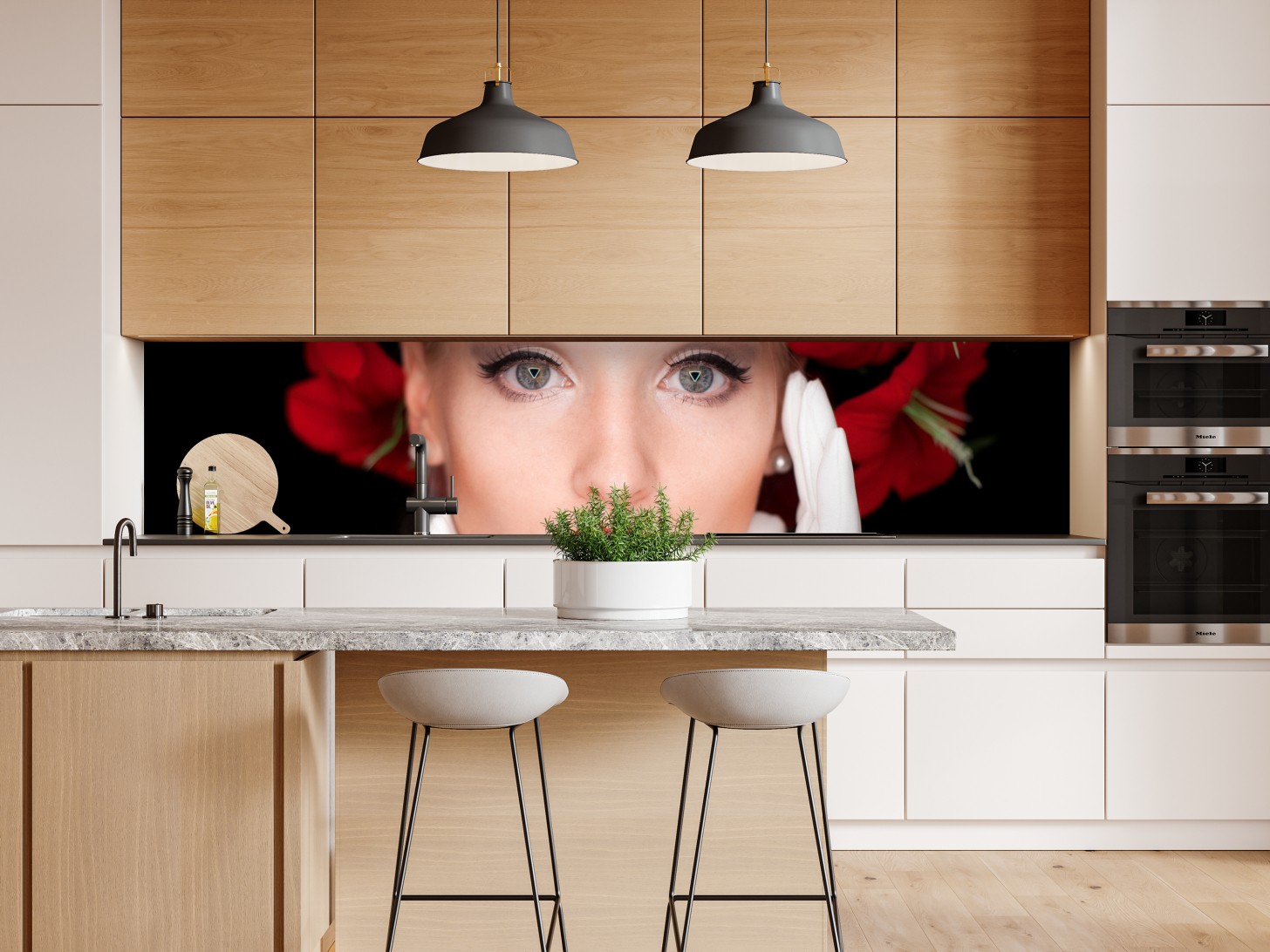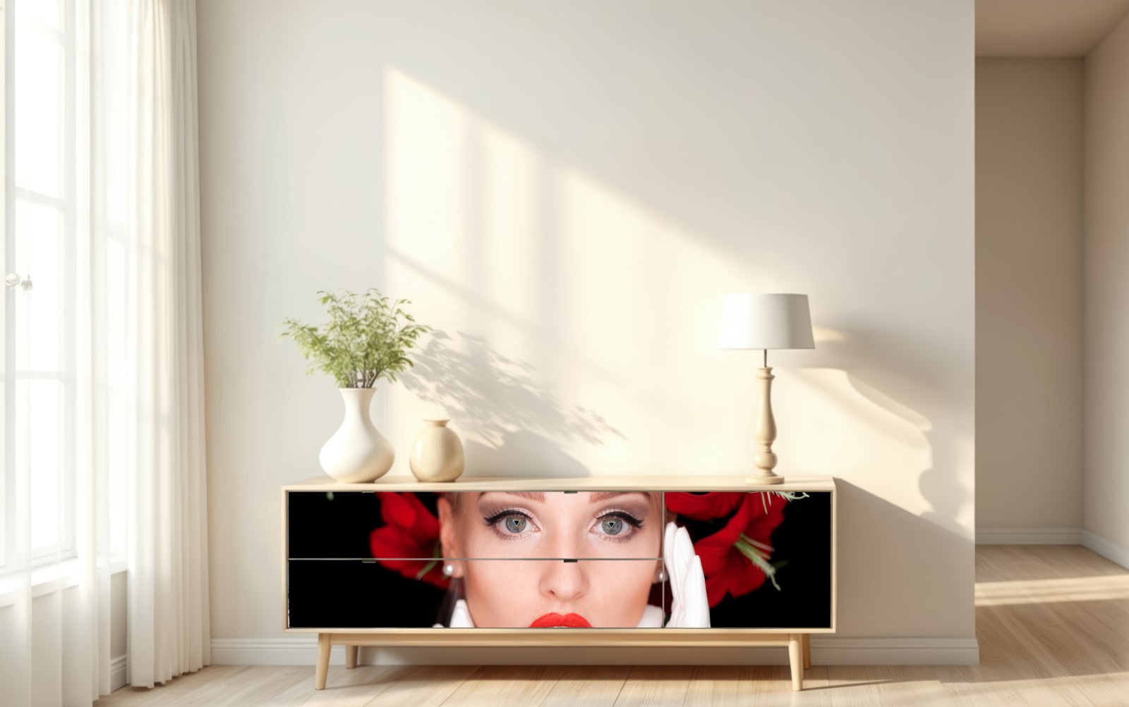 Repositionierbarer Aufkleber Elegantes porträt mit rotem blumenkranz